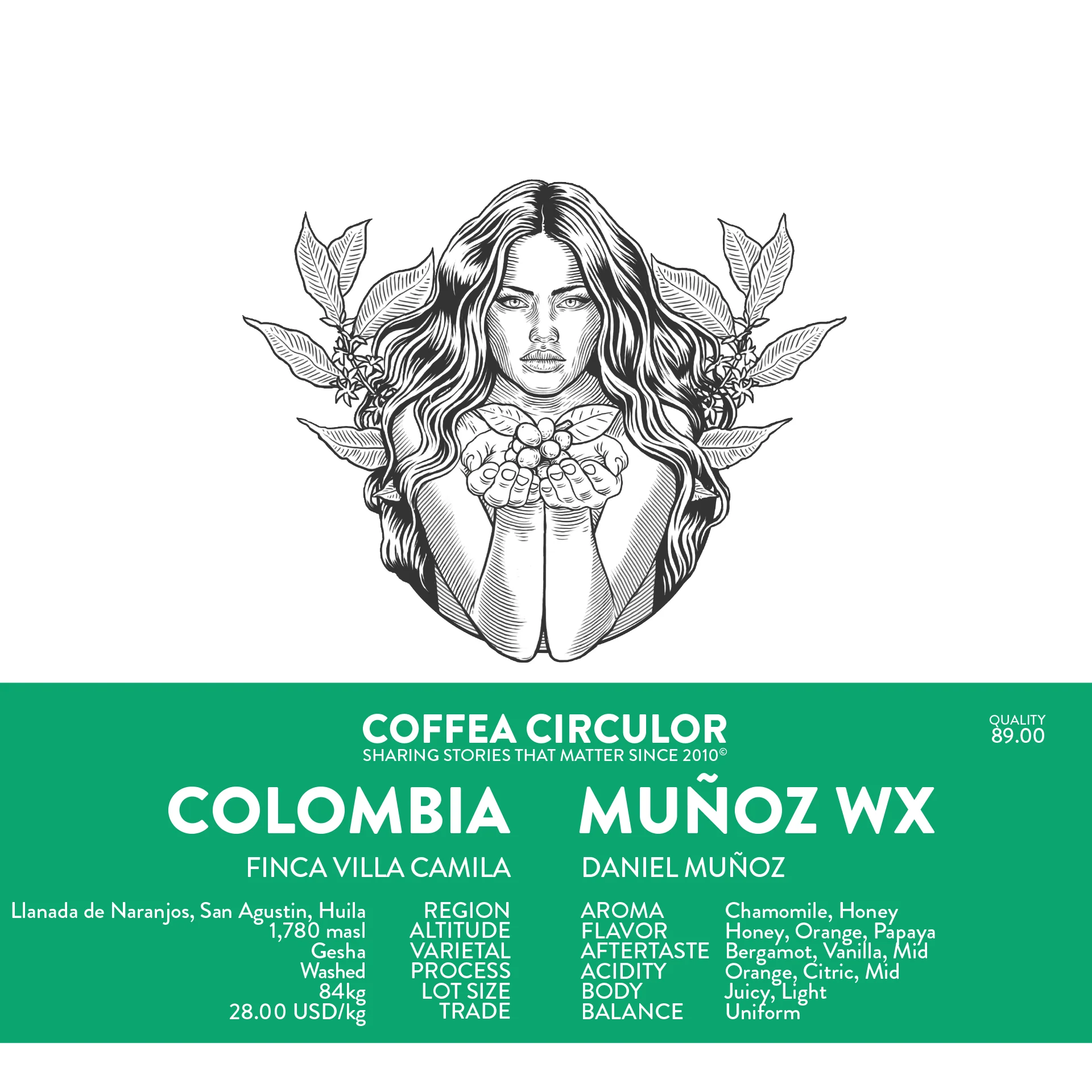 Coffea Circulor - Munoz Gesha WX - Colombia - Ljusrostade hela kaffebönor - 250g