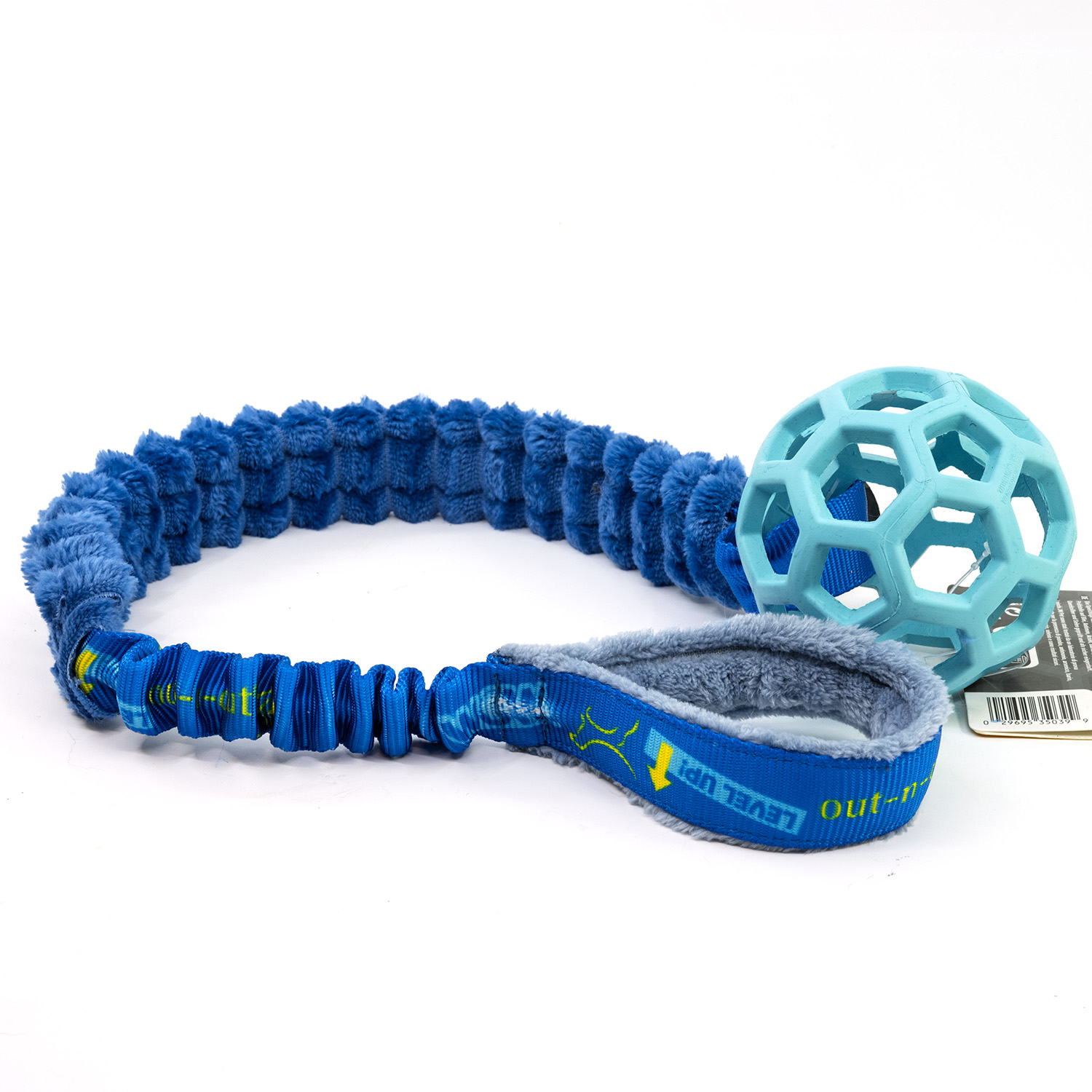 Semi-Lång Jakt och kampleksak med expander. JW pet Hol-ee roller Small (ca 9cm). Remmen är ca: 25mm bred. Handtag fodrat med fleece. Leksaken är tillverkad i Sverige.