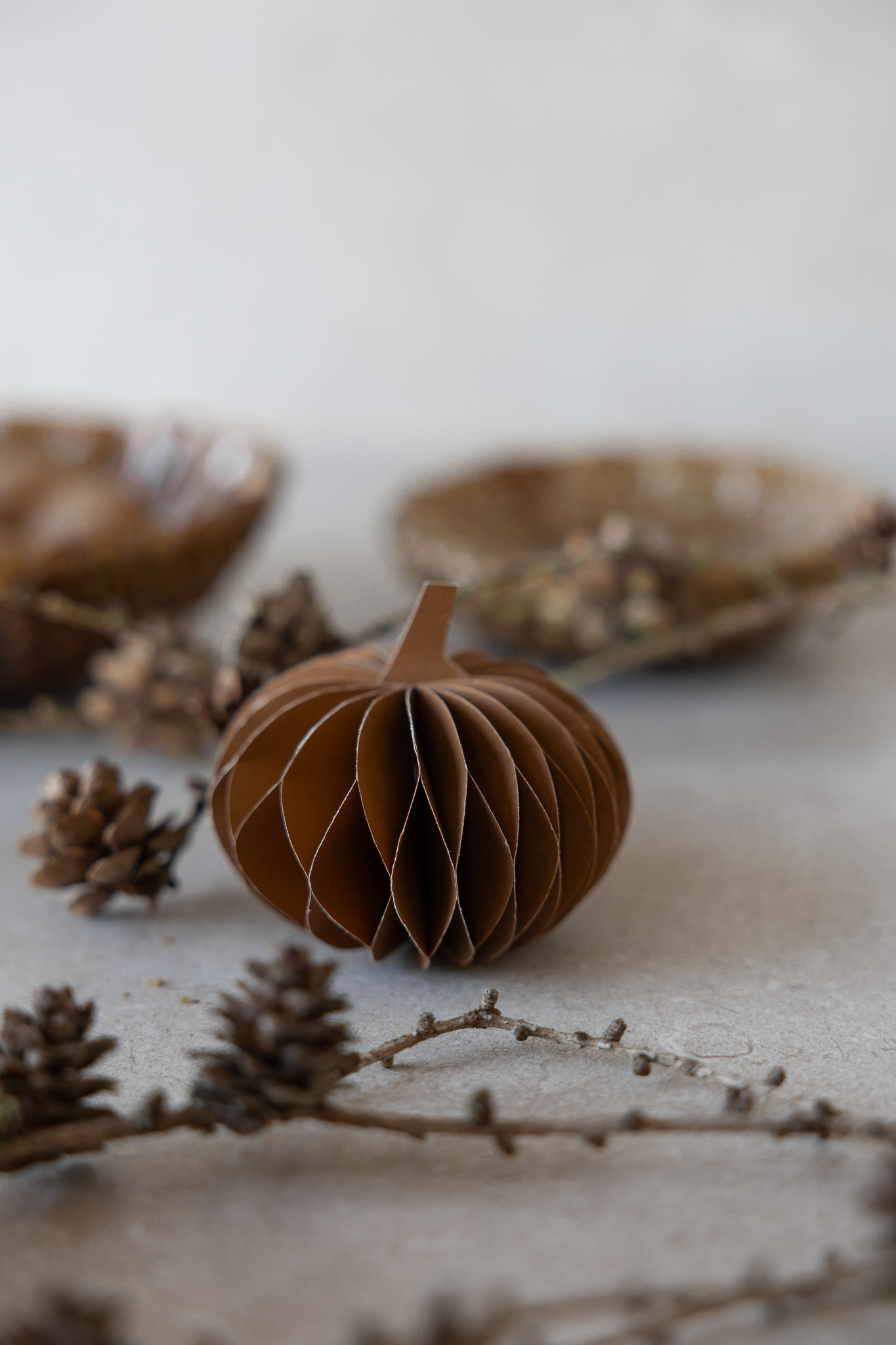 Hängande dekoration i mörkbrunt papper, perfekta att ha som höstdekorationer. Håll det enkelt med bara pumporna eller kombinera med andra höstprydnader från vårt sortiment. Dekorationerna är också vackra att hänga på en byrå, ett dörrhandtag eller pynta med på ett fat.8 x 8 x 5 cmMaterial: Papper