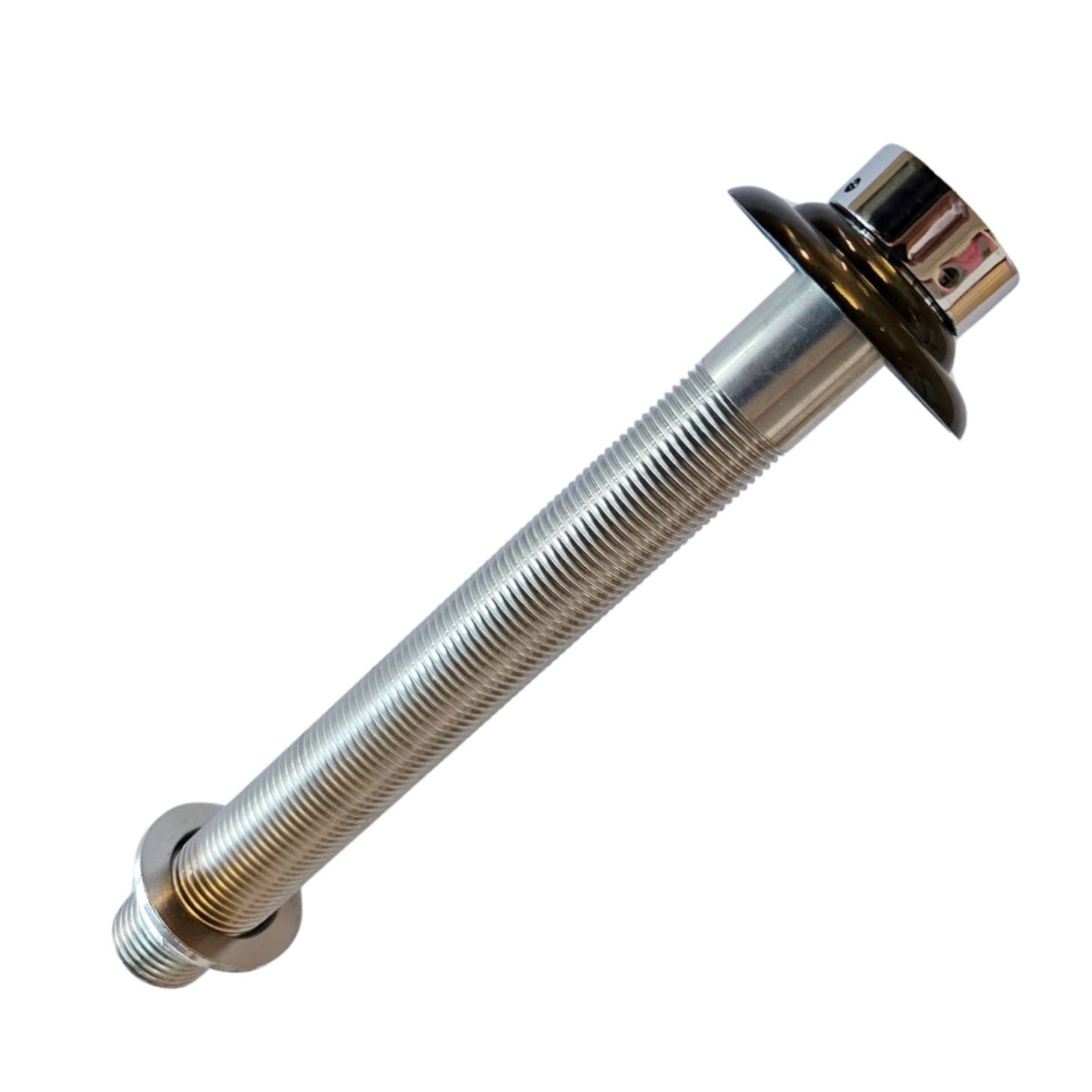 Genomföring för montering av tappkran i en lodrät vägg, t ex genom en kylskåpsvägg.Fördelen med ett längre bakstycke är att det hjälper till med att hålla tappkranen och ölet i tappkranen kall.Alla delar som kommer i kontakt med ölet är helt i rostfritt stål.Totallängd: 206 mm (utan mutter och nippel)Maximal väggtjocklek: 166 mmLämplig håldiameter: 22-23 mmGänga mot tappkran: 1-1/8"-18 UNEF (amerikansk standard)Gänga bakåt: 5/8" BSPMaterial: rostfritt stålNippel, fatölmutter och packning köps till separat.