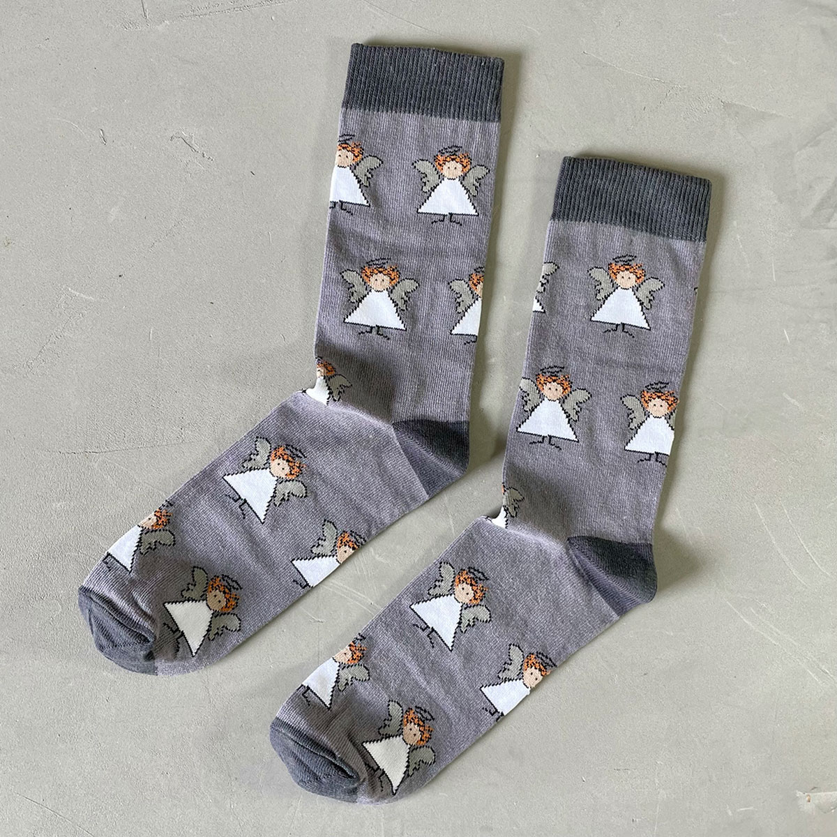 Strumpor med änglamotivStrumpa av hög kvalitet. Strumpan är mjuk och tålig tack vare en mix av bomull, polyamid och elastan.Motiv: ÄnglarKanske har du någon i din omgivning som skulle bli glad för ett par änglastrumpor och påminnelsen ur Psaltaren 91:11: ”Hans änglar ska skydda dig var du än går.”Material: 15% polyamid, 5% elastan, 80% bomullStorlek: 35-38Färg: GråStrumpor - Änglar, storlek 35-38 mängdFörpackningens mått 24 × 1,5 × 8,5 cmProduktens längd 24 cmProduktens höjd 8.5 cmBornelings förlag