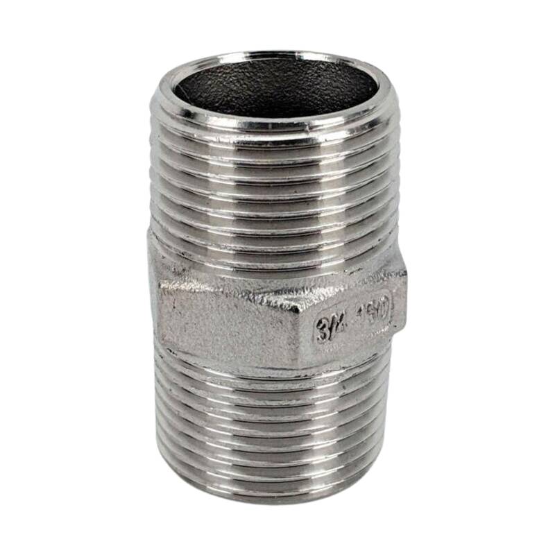 Rostfri adapter med utvändig 3/4" BSP hangänga i båda ändar.Längd: 40 mmMaterial: rostfritt stål (AISI 304)