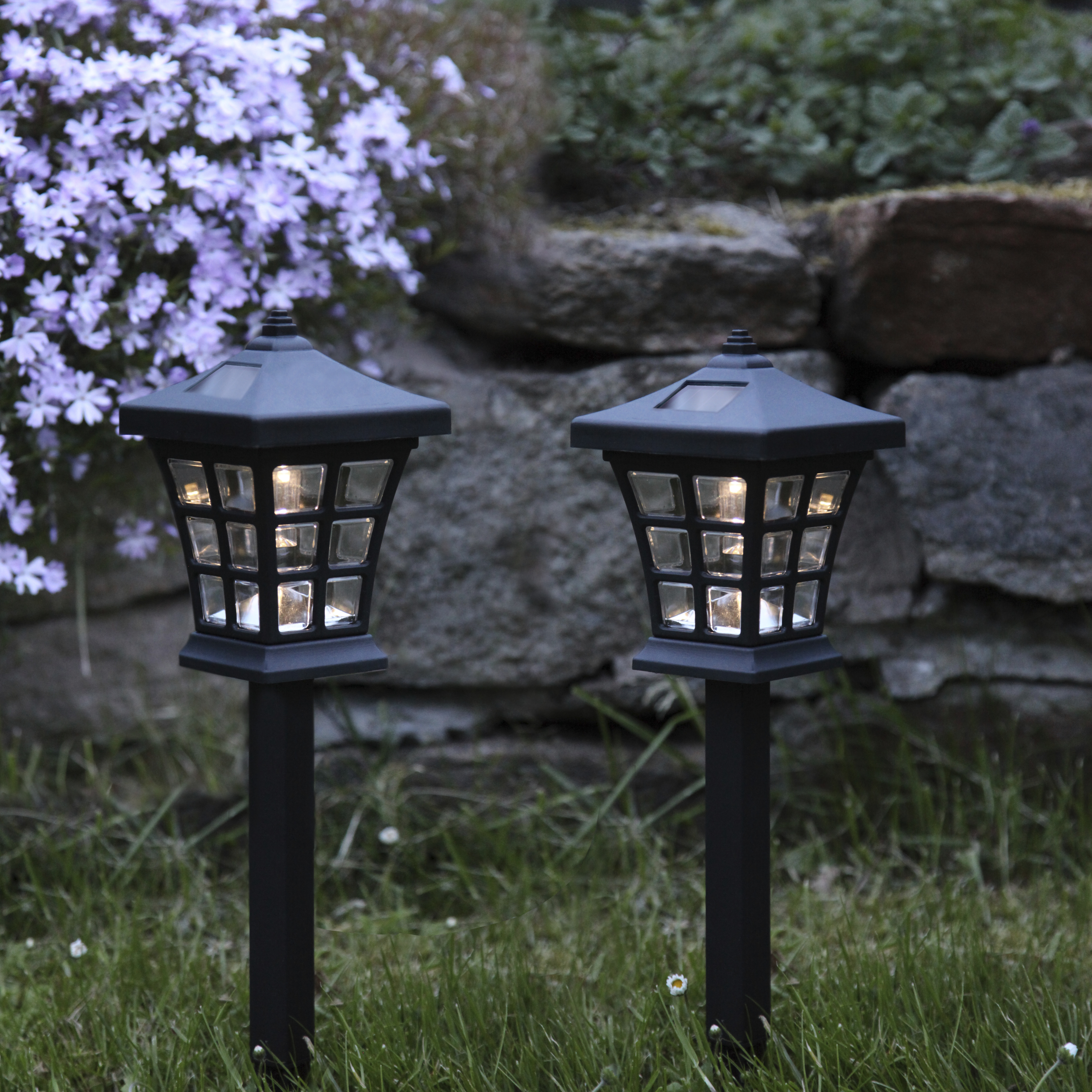 Solcells-pollare 2-pack - Solcellsbelysning - Trädgårdsbelysning