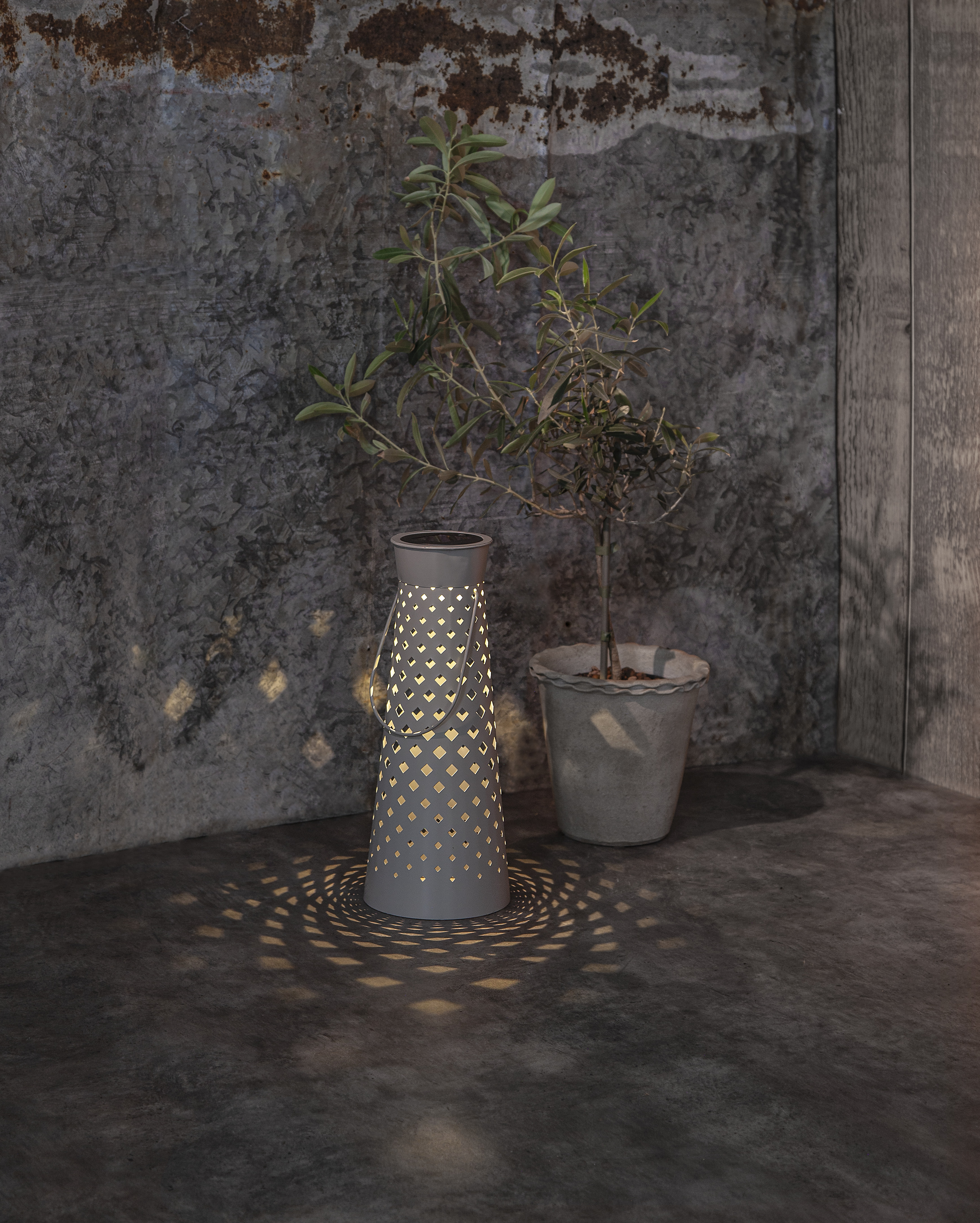 Användningsområde: UtomhusBatteriinformation: 1 batteri AArechargeableNiMH ingår. Brinntid ca. 5h.Sensor: LjusreläStrömbrytare: IntegreradDjup (cm): 15,50Bredd/längd (cm): 15,50Höjd (cm): 38,50Typ av ljuskälla: LEDLjuskällor: 1Sockel: Ej utbytbarFärg: GråFärgtemperatur (K): 3000Ljusfärg: VarmvitSpänning: 1,2V DC