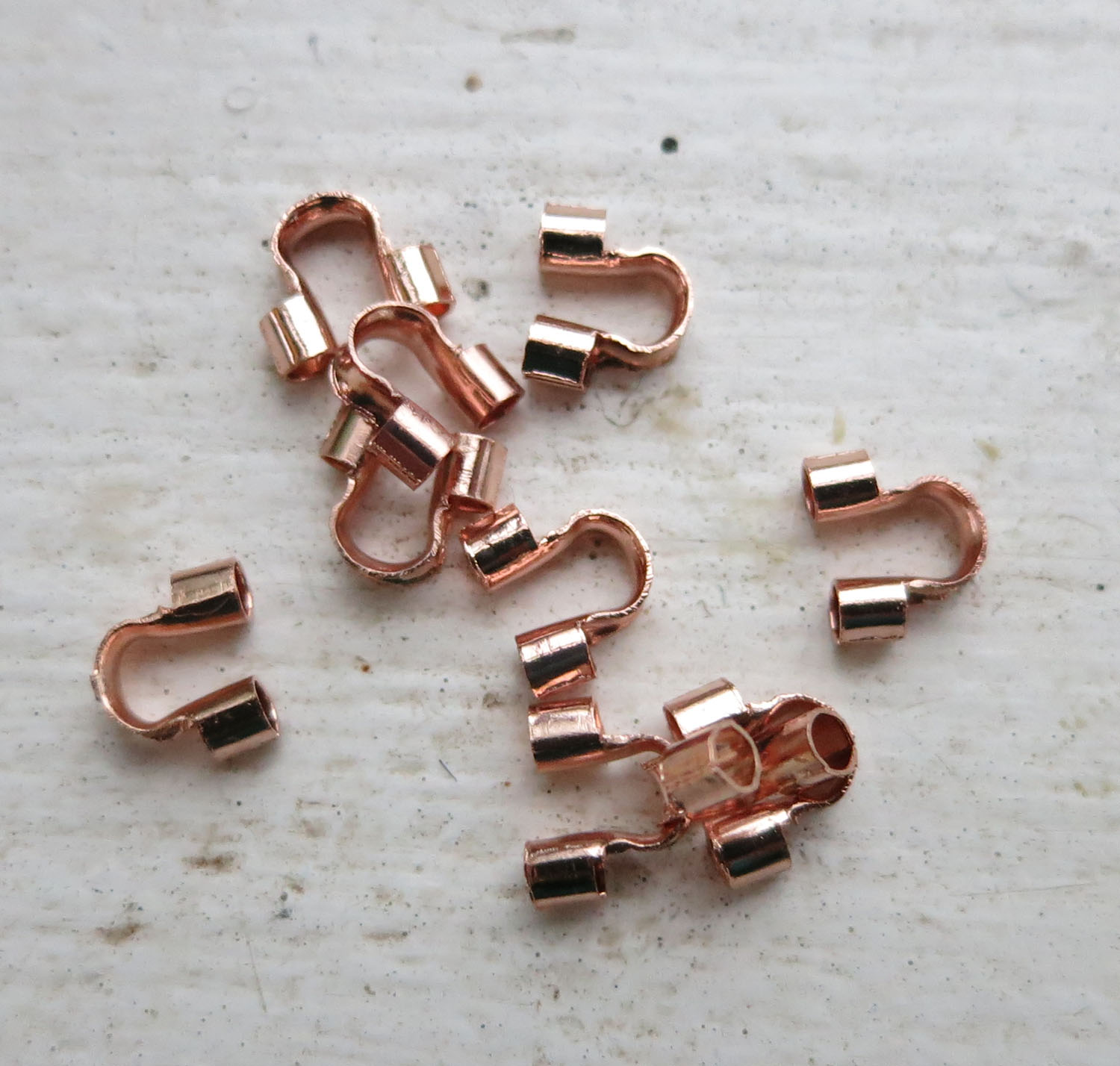 10 stycken wireguard, skydd som för plastad wire som gör så att inte tråden går igenom tex lås/ringar osv.Roséguldfärgad.Mått hålen ca 1,5 mmTillverkad i Grekland.