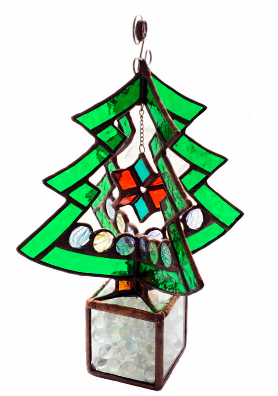 Målat glas dekoration "Julgran" ↕ 25cm