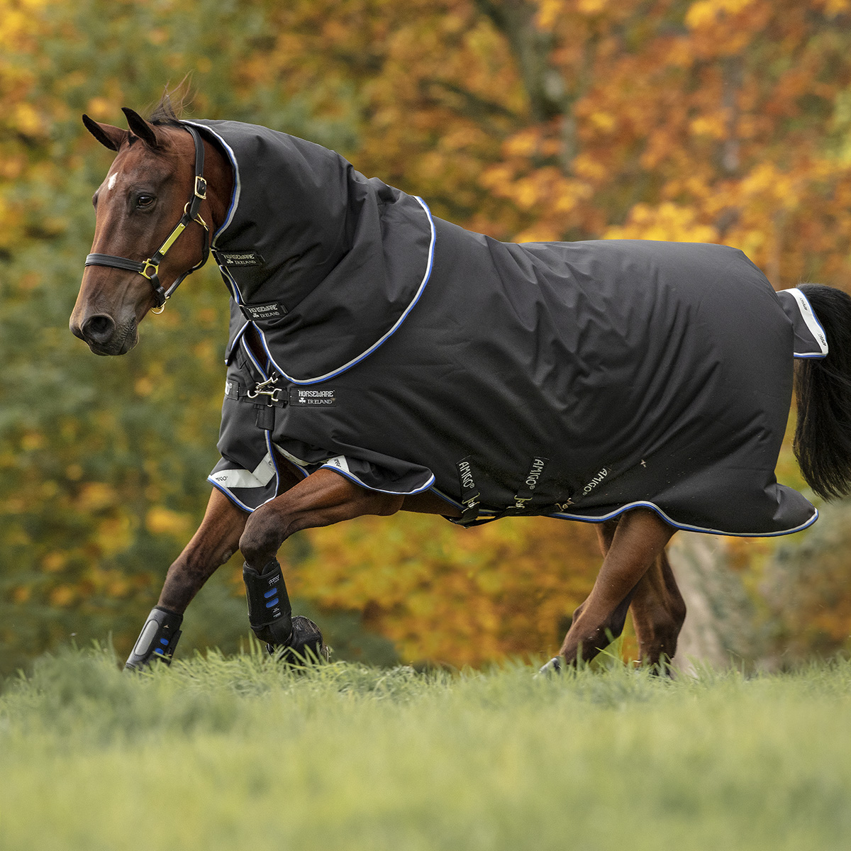 Amigo Bravo 12 Plus har ett starkt vattentätt, andningsbart polyester yttermaterial om 1200 denier. Avtagbar hals med 150gr fyllning ingår.Antibakteriell, antistatisk, glansförstärkande polyesterfoder på insidan. Fibervaddering om 250 gram.Utskurna benbågar för mer rörlighet både fram och bak.V-front-knäppning i fram för att eliminera tryck över bog vilket ger mer komfort när hästen betar.Två reflexremsor för ökad sikt och säkerhet.Tre maggjordar för bästa passform och stabilitet.Kompatibel med Horseware®-lining system så att du enkelt kan ändra täckets vikt beroende på vädret.Alla täcken som heter ”Plus” ingår avtagbar hals.Alla täcken som heter ”All In One” eller ”1 Piece” har fast hals. Och alla täcken som inte har något av ovanstående köper man utan hals, dock kan det gå att köpa till hals separat, men då framgår det i artikelbeskrivningen.