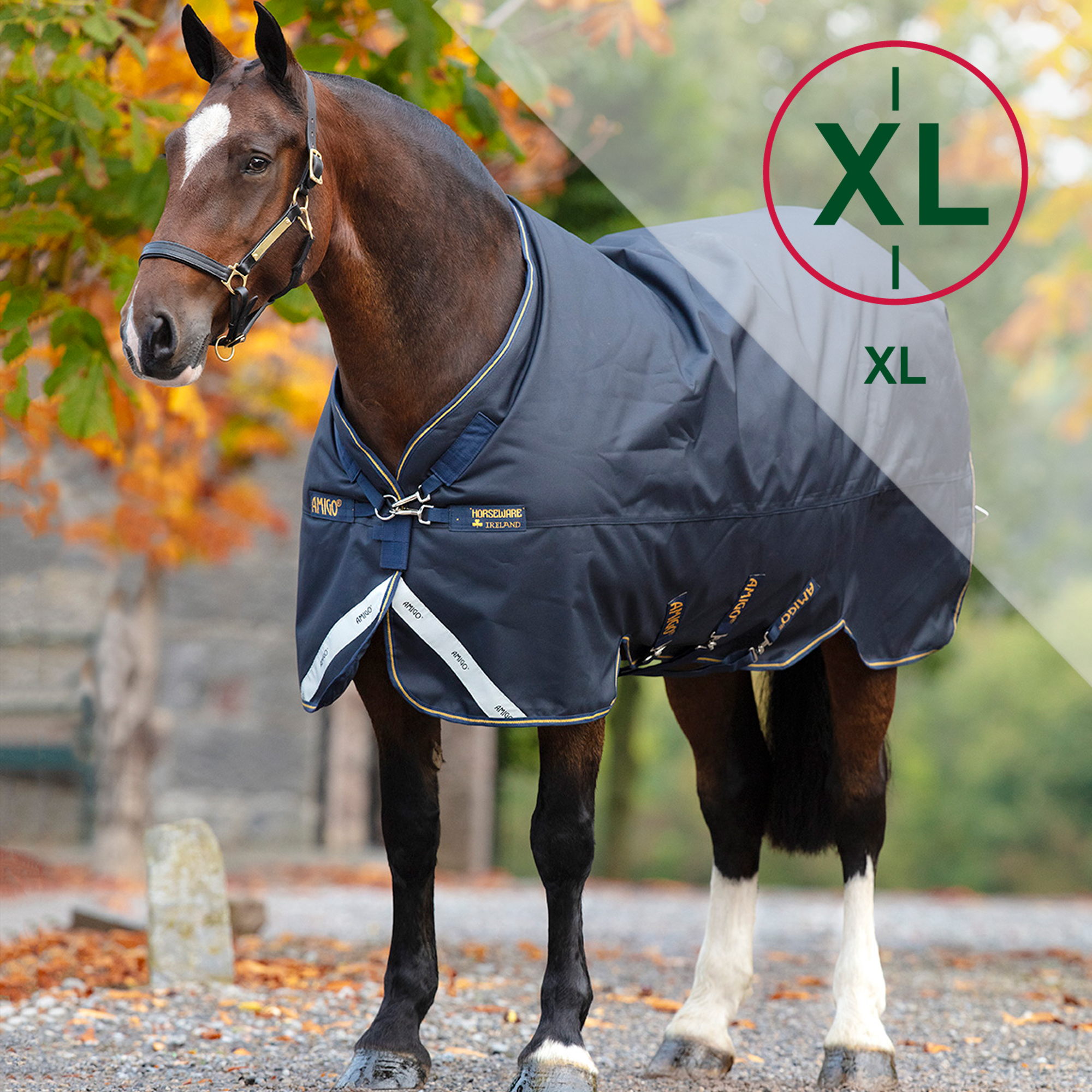 Amigo Bravo 12 XL är designad för den kraftigare hästen. Mer utrymme runt hals och bog samt djupare runt magen.Starkt vattentätt, andningsbart polyester yttermaterial om 1200 denier. Fibervaddering om 250 gram.Antibakteriell, antistatisk, glansförstärkande polyesterfoder på insidan.Utskurna benbågar för mer rörlighet både fram och bak.V-front-knäppning i fram för att eliminera tryck över bog vilket ger mer komfort när hästen betar.Två reflexremsor för ökad sikt och säkerhet.Tre maggjordar för bästa passform och stabilitet.Kompatibel med Horseware®-lining system så att du enkelt kan ändra täckets vikt beroende på vädret.Alla Horsewares täcken i XL modellen är:20 % djupare skärning ger extra utrymme i bogen.10 % längre kroppslängd för att täcka hela hästen.
