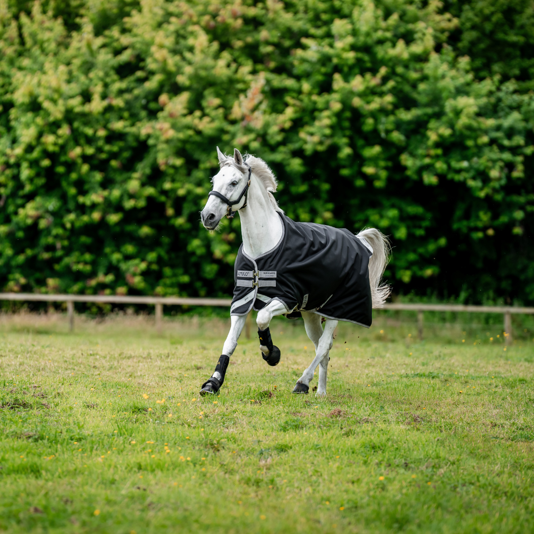 Amigo Bravo 12, ett slitstarkt ofodrat regntäcke som består av 1200D polyester med sin utmärkta andningsförmåga och vattentäthet. Fasta fästen finns för kompatibla halsar och liners som går att köpa separat hos oss vid behov av extra skydd!Insidan av täcket består av antibakteriell, antistatisk, glansförstärkande polyesterfoder som förebygger mot skav och bidrar till en glansigare päls. Klassisk dubbel-knäppning och två maggjordar som omsluter hästen för optimal passform och skydd.Utskurna benbågar fram-och baktill för att optimera hästens rörlighet och komfort.Två reflexremsor framtill och en bak för ökad sikt och säkerhet.Kompatibel med Horseware®-lining system så att du enkelt kan ändra täckets tjocklek beroende på vädret.