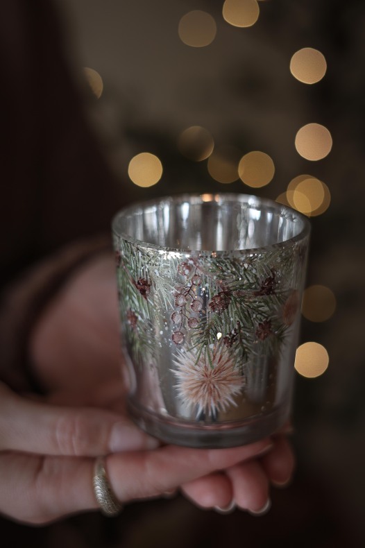 Vacker, vintrig ljuslykta med fint julmotiv av granar och hängande julornament/julgranskulor i sann julkänsla. Väldigt mysig och skimrande vacker när den är tänd. Finish antik silver med detaljer i mönstret av naturens toner. Säljs med 10% förmån till vår hjärtesak Barncancerfonden.Storlek: 7x8 cmFinish: Matt vit med motiv i sand, brunt och gråttFinish antik silver med detaljer i mönstret av naturens tonerDenna finish sprejas på glaset och bränns därefter, små partiklar i sprejmomentet kan utgöra små ojämnheter och små luftbubblor kan ibland förekomma. Detta är något vi inte kan råda på då det är en del av processen vid tillverkningen, det är helt omöjligt att undkomma. Det är inget som utgör något fel på lyktan. Lyktan kan torkas av med lätt fuktad trasa, tål ej diskmaskin.