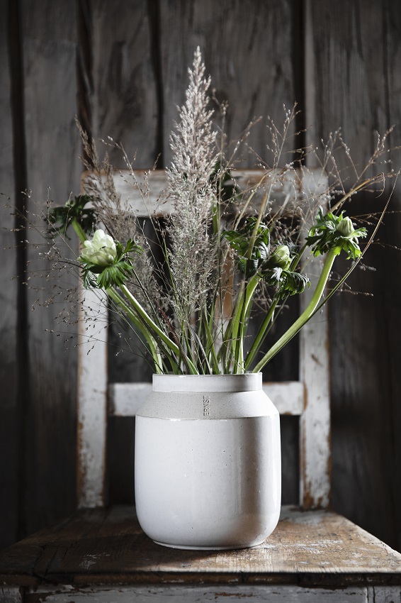 Ljuvlig nyhet från ERNST! Finaste vasen i rustik stil från Ernst. Vackert glaserad med matt bård. Perfekt till våren och sommarens vackra blommor. Finns även i mindre storlek som är fin att kombinera med. Från Ernsts senaste kollektion.Stl: 15,5 x 18 cmFärg: Sand/vitglaserad