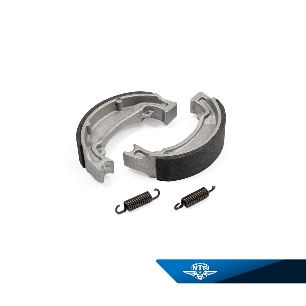 Bromsbackssats i aluminium inkl. fjädrar.Utförande:Mått A: 105mmMått B: 104mmBredd: 25mmPassar bromstrumma med Ø = 110mmNTS bromsbackar är mätta med klackarna mot varandra.Passar på DT50MX/DT80MX, DT50R 1992-1995, FS1/FS1-DX, LB50 Chappy, FS1-SE/FS80originalnr 326-25330-10