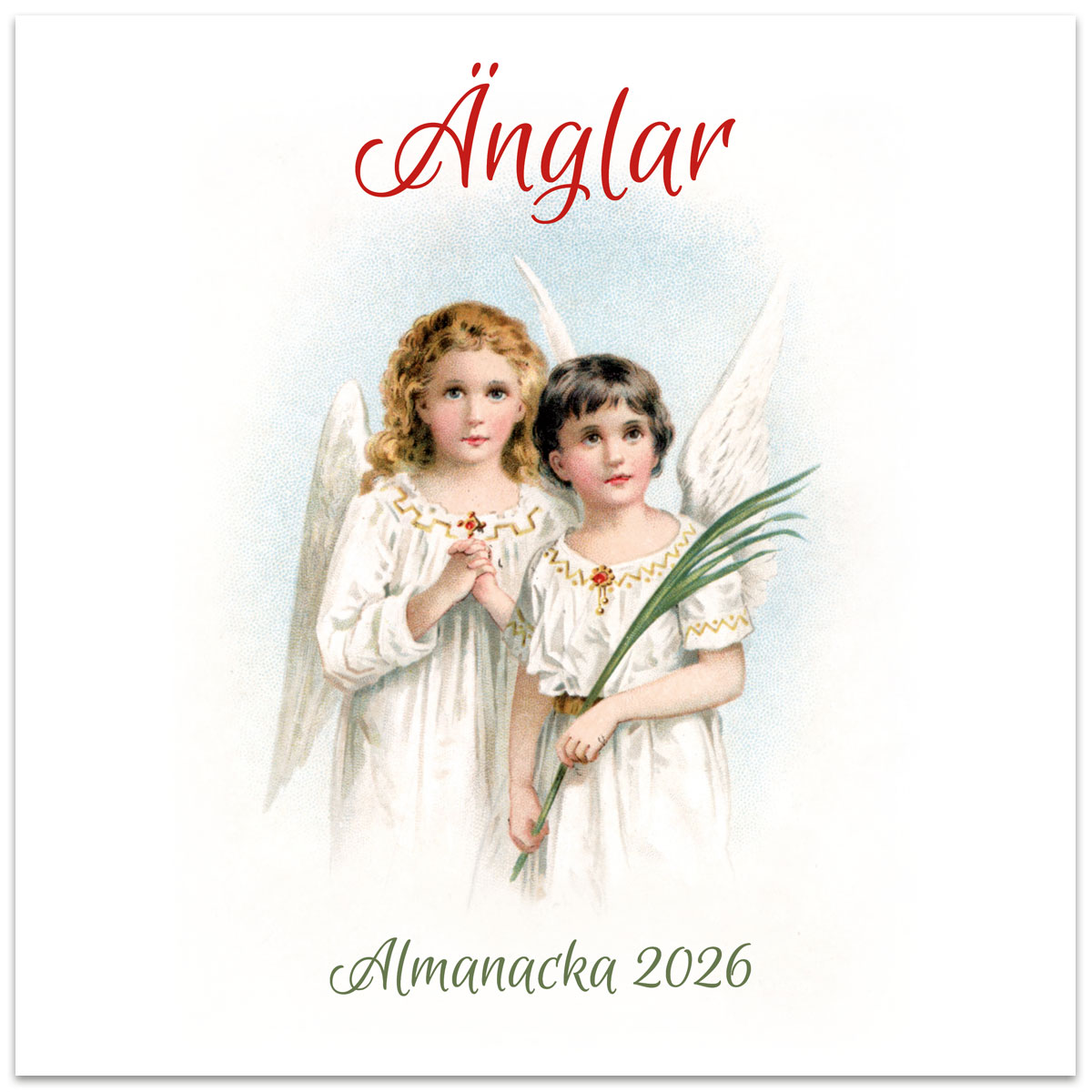 Almanacka för 2026 med vackra änglabilderAlmanacka för 2026 med vackra änglabilder. Kalendariet innehåller allmänna helgdagar, flaggdagar, namnsdagar, kyrkoårets helgdagar, de nordiska nationaldagarna och månens alla faser.
