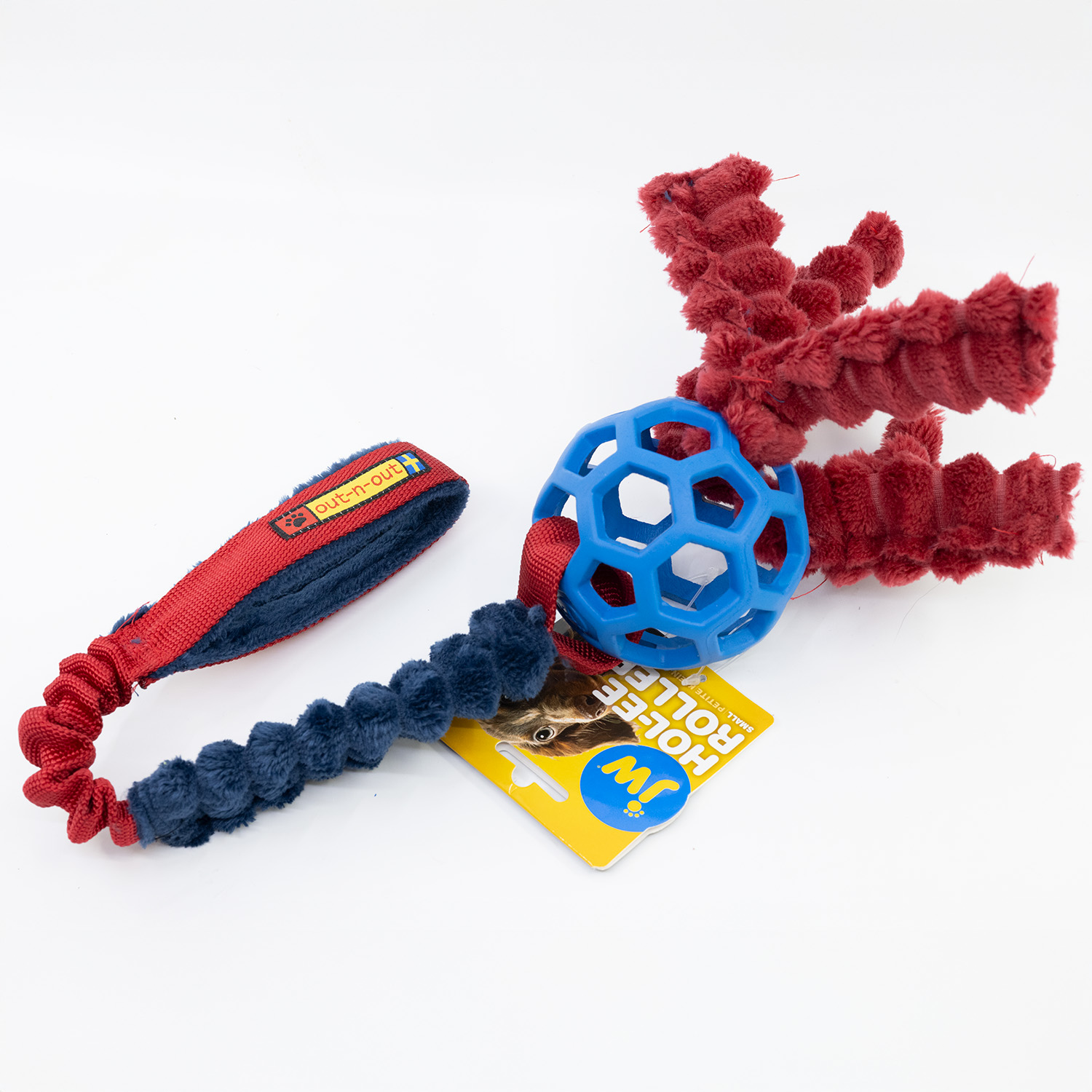 Kampleksak med expander. JW pet Hol-ee roller Small (ca 9cm). Remmen är ca: 25mm bred. Handtag fodrat med fleece. Leksaken är tillverkad i Sverige.