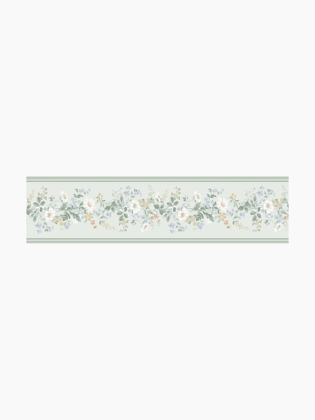 Den ljuvliga bården Olivia med sin milda ljusgröna botten låter de lekfulla buketterna av sommarblommor sprida ut sig likt en midsommarkrans. Låt bulliga prästkragar och näpna små blåklockor samsas med bladen och föra tankarna vidare till värmande sommardagar. Bårdens mönster matchas fint med den gröna enfärgade tapeten Salvia från kollektionen Kulör.Rekommenderat Lim: Hernia Non-WovenFör bästa resultat rekommenderar vi en grundmålad yta att tapetsera på.