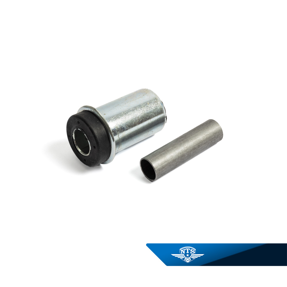 Silentblock/Bussning för framvagnens infästning mot flakramen.Se sprängskiss nummer 17 +19.Passar till flakmoped Crescent 1210, MCB 1189/1199 samt Norsjö Carrier 1187/1197Motsvarar MCB originalnummer: 211610-4700 + 231115-8500Mått:Totallängd 50 mm, Hål utan hylsa 14 mm, Hylsans innermått 12,1 mm. Ø yttermått 27,1/34,5 mm på metallen. Gummits yttermått 29,5 mm.Passar inte Puch Packy.