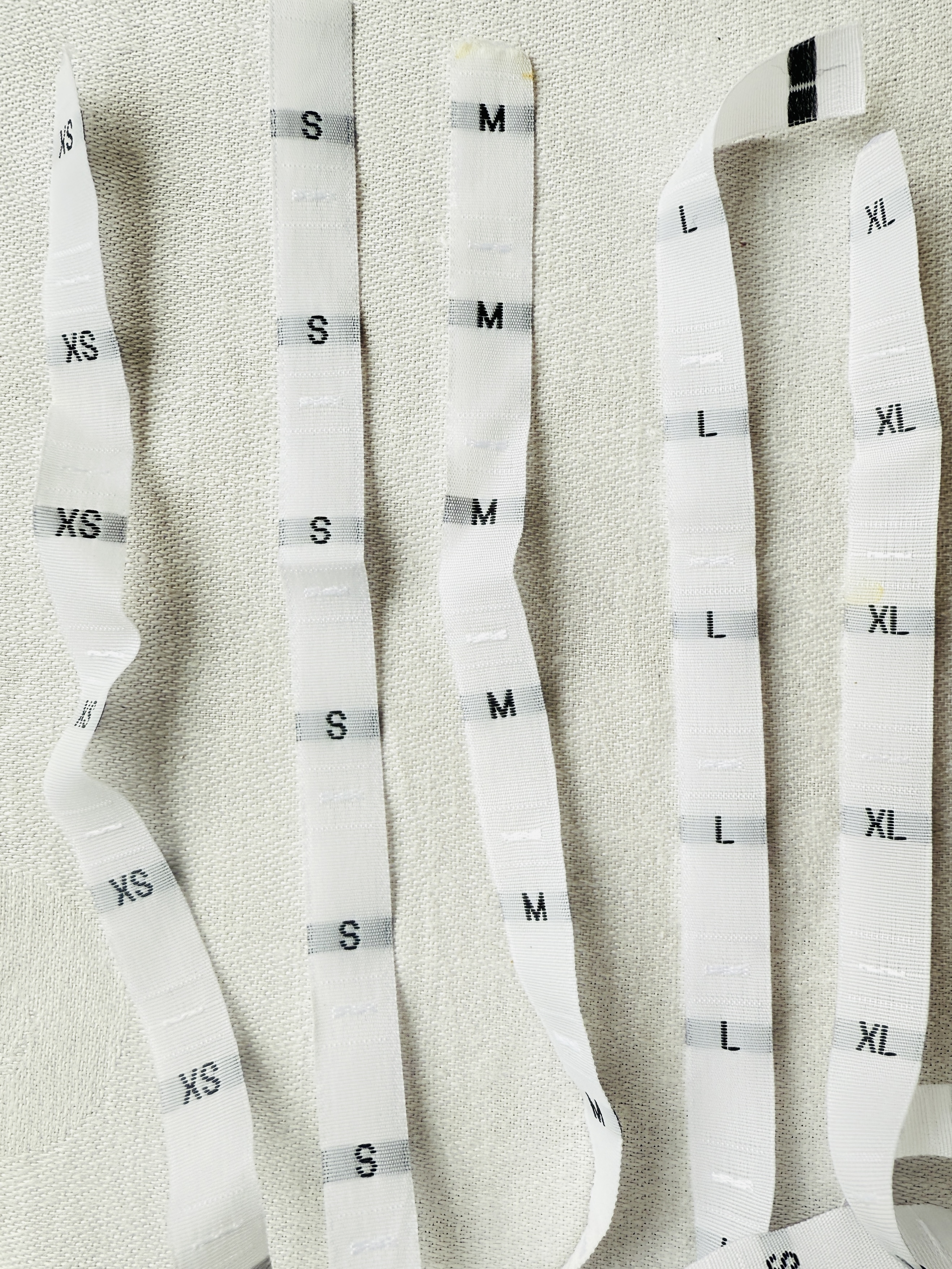 Vävda etiketter för st XS - XL, styckevis. Välj text och antal.Vävda etiketter, vitt band med svart text. Varje etikett är 12 mm bred och 30 mm lång. Välj storleksbeteckning XS, S, M, L eller XL. Välj även antal (du får en sammanhängande band för varje storlek). Du kan köpa från 1 st. Tänk på att välja varje storlek som en ny produkt till din varukorg. Pris per etikett.