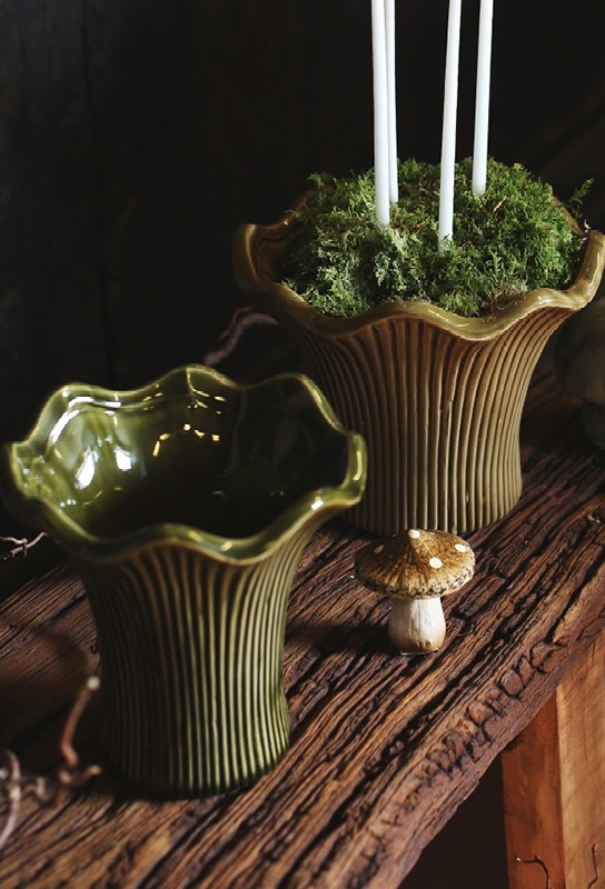 Handgjord kruka i form av en svamp/kantarell.16x16x17 cmMaterial: KeramikFärg: Grön/Melerad