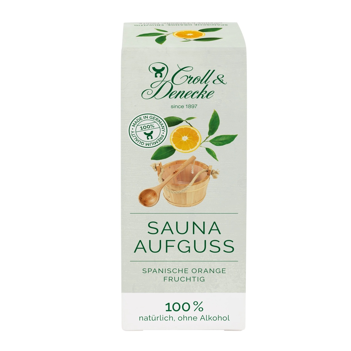 Croll & Denecke bastuolja Spansk apelsin. Den exklusiva sammansättningen bygger på 100 % naturliga ingredienser och är helt fri från alkohol – perfekt för dig som söker ett rent och skonsamt alternativ för bastuupplevelsen.Bastuoljan sprider en behaglig, harmonisk doft som lyfter både kropp och sinne.