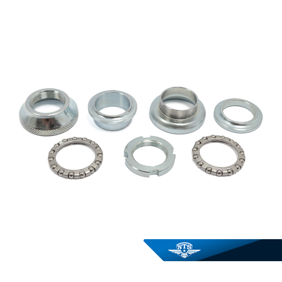 Produkten passar tillFram-KingLuxus 44 (Victoria M51) 1961-1963Luxus 54 (HMW)Luxus 68 (HVA)Moped 40/41/45 (Victoria M50)Moped 42/43/46 (Victoria M51)Moped 53 (HMW)Moped 67 (HVA)Moped-Scooter 61 (Victoria M50)Moped-Scooter 62 (HVA)Transportmoped 56 (Victoria M51)HusqvarnaCornette/SportCoronaLyxNovolettePopulärRoulette PopulärRoulette Standard/LyxStandardMCB (Monark & Crescent) 1961-1981Crescent Sport 1175Husqvarna Lyx 3121/3122Husqvarna Sport 3124MCB LM16 1238 (Sachs 502)TransportmopedCrescent 1210MCB 1188/1198MCB 1189/1199MCB 1193MCB 1194Monark 1731/1741 (Ilo V50)Monark 62/628/629 (Ilo V50)Norsjö Carrier 1187/1197Norsjö Packy II (Sachs 506/3)Norsjö Packy PuchKomplett svensktillverkad styrlagersats med öppen, plan låsmutter för modeller med styret monterat i styrstam och där styrkronan är anpassad för låsning med styrklamma. Passar även perfekt till styrspindlarna i framvagnen på trehjuliga transportmopeder.Tillverkad för perfekt inpassning till Husqvarna, MCB, Fram/King, Norsjö m.fl ramar och framgafflar enligt följande: Styrhuvud med 30mm innerdiameter (slitgräns: >30,1mm)Styrkrona med gänga 1″-26g / rör: Ø=25,4mm / fläns: Ø=25,8mmOBS: Styrhuvudet kan ofta vara hårt slitet, särskilt i underdelen, detta måste självklart åtgärdas innan montering av det nya lagret för att ett perfekt resultat skall kunna uppnås! Notera dock att ovalitet kan förekomma och då får man räkna snittet mellan flera olika måttpunkter.Tekniska data:A: Låsmutter öppen, plan galvaniserad med gänga: 1"-26gB: Lagerskål övre med gänga 1"-26gC: Kulring med 15st 3/16"(4,76mm) ytterdiameter Ø=39mmD: Kona övre för styrhuvud med 30mm innnerdiameter.E: Lagerskål undre för styrhuvud med 30mm innnerdiameter.F: Kulring med 15st 3/16"(4,76mm) ytterdiameter Ø=39mmG: Kona undre för styrkrona med fläns 25,8mmKonor och skålar är tillverkade efter den äldre, för cykel och mopedbranchen, gällande svenska standarden samt härdade och elförzinkade för mycket lång hållbarhet.Kan ersätta följande originalnummer:MCBLåsmuttter: 6111-3Skål, övre: 6110-5, 6111-5, 6115-5 Kona, övre: 6110-7, 6111-7, 6115-7Kulring: 1506, 1508, 6115-6Skål, undre: 6110-8, 6111-8, 6115-8Kona, undre: 6110-9, 6111-9, 6115-9HusqvarnaLåsmuttter: C-13231Skål, övre: C-13114Kona, övre: C-13113Kulring: 2940-372Skål, undre: C-13120Kona, undre: C-13111Fram/KingLåsmuttter: 4914Skål, övre: 4926Kona, övre: 4921Kulring: 2371Skål, undre: 4928Kona, undre: 4923NorsjöLåsmuttter: 66111-0003Skål, övre: 66115-0005Kona, övre: 66115-0007Kulring: 66115-0006Skål, undre: 66115-0008Kona, undre: 66115-0009Viktigt: Delarna kan inte kombineras med äldre originaldelar enligt ovanstående originalnummer. Det nya styrlagret ersätter som helhet det gamla, dvs samtliga delar måste alltså bytas ut!
