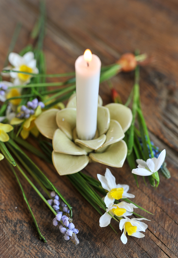 Ljusstake - Blomma - Ljusgrön - Kronljus - Porslin - Ø10 x 5 cm