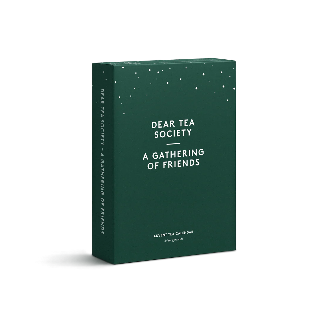 A Gathering of Friends – Teadventskalender från Dear Tea SocietyEn teupplevelse i 24 akterVad får du när du samlar tolv unika tekaraktärer, låter dem glänsa två gånger var och förpackar dem i en charmig nedräkning? Svaret är A Gathering of Friends – den inte-så-vanliga te-adventskalendern.Bakom varje lucka väntar en ny smakupplevelse – från kraftfulla svarta teer till mjuka vita, fruktiga blandningar och balanserade örter. Varje tepyramid kommer med sin egen personlighet och noggrant anpassade brygginstruktioner.Det här är mer än te. Det är en inbjudan att möta excentrikerna, romantikerna, rebellerna och drömmarna i Dear Tea Society – och kanske hitta lite av dig själv i varje kopp.Tio av de tolv teblandningarna är ekologiskt certifierade, och de två andra är skapade med samma omsorg och kvalitet. Alla tepyramider är tillverkade av PLA, ett växtbaserat, biologiskt nedbrytbart material som låter teet blomma samtidigt som det är snällt mot planeten.The kettle is on. Your new friends are waiting.Egenskaper24 dagar av teglädje – 12 unika teblandningar10 ekologiska teer + 2 med samma höga kvalitetPLA-nedbrytbara tepyramider – bra för smaken och miljönBrett urval: svart, grönt, vitt, rooibos, frukt och örtteerDear Tea Society-karaktärer – en lekfull samling personligheterProduktinformationInnehåll: 24 x 2,5 g te i pyramidNettovikt: 60 gMått (ask): 23 × 32 × 4,2 cmÅtervinningYtterkartong & hängare: Kartong – återvinns som papper.Tepyramid: PLA, växtbaserat material – lägg i matavfall/kompost (om anläggningen tar emot PLA) eller i brännbart hushållsavfall.Kuvert/påse: Livsmedelssäkert skyddshölje – sorteras som brännbart hushållsavfall.
