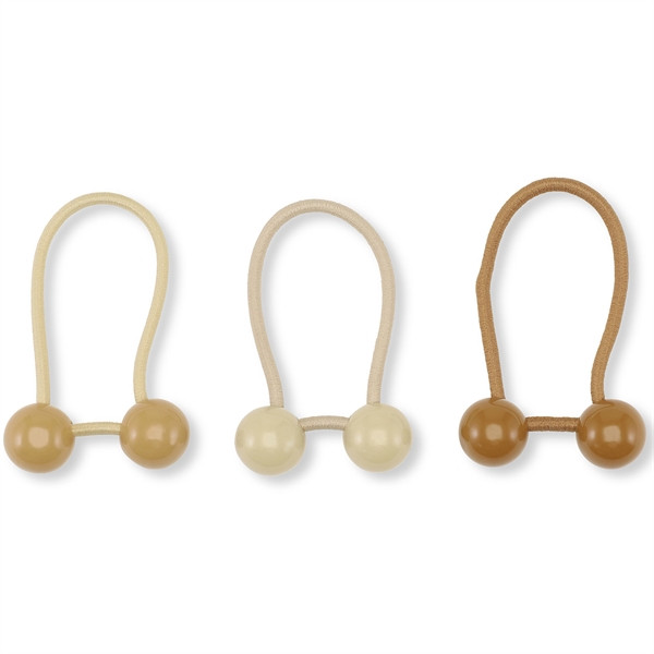 3-pack med hårband, hårbanden är dekorerade med fina träkulor i milda toner.