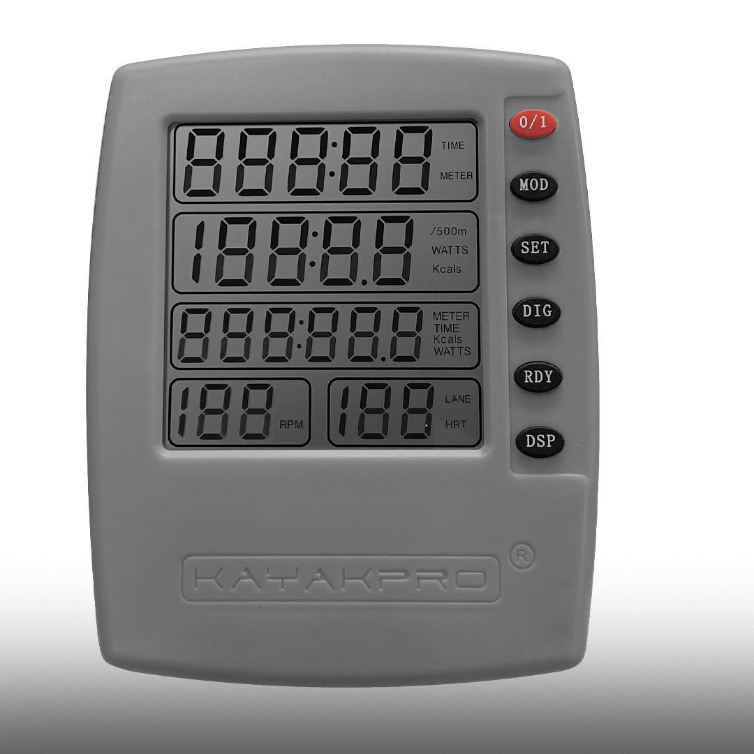 KayakPro Standard-konsolen medföljer din Xeon GYM-kajak- och kanot-ergometer.DistansTidSlagfrekvensHjärtfrekvensEffekt i wattEnergi i kalorierFörfluten tidNedräkning av distans eller tidBeräknad hastighet eller tempoHastighetAnslutning till PC-programvara – tävling och träning via internetDen inbyggda konsolen kan ta emot uppgifter om den tränande atletens vikt. Det är viktigt att ange användarens vikt för att säkerställa att datautmatningen för varje Xeon är specifik för vikten hos den atlet som använder den.Om ingen vikt anges används automatiskt en standardvikt på 75 kg eller 168 lbs. Se bruksanvisningen för KayakPro OnBoard Console för information om hur du anger idrottarens vikt.Den inbyggda standardkonsolen bör kalibreras varje gång Xeon används – detta säkerställer konsistens och noggrannhet i datautmatningen samt konsistens mellan Xeon-ergometrar.