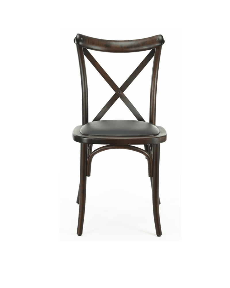 VERONA- Stol i brun valnöt med svart konstlädersits