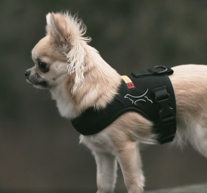 En stabil sele med mjukt foder runt hela bröstet. Tillverkad i ett stretchigt, mjukt material med inbyggda remmar som gör selen lätt, följsam och smidig — perfekt för små hundar och valpar, men även för dig som vill minska skav på pälsen. Inga kantiga spännen eller justeringar. Remmarna är tillverkade i Sverige. Kan användas utanpå våra Lager 1-täcken. Reflexdetaljer framtill och på sidorna ökar synligheten. Reflexdekalerna kan variera beroende på storlek. Italienskt funktionsmaterial.Tillverkad i Sverige