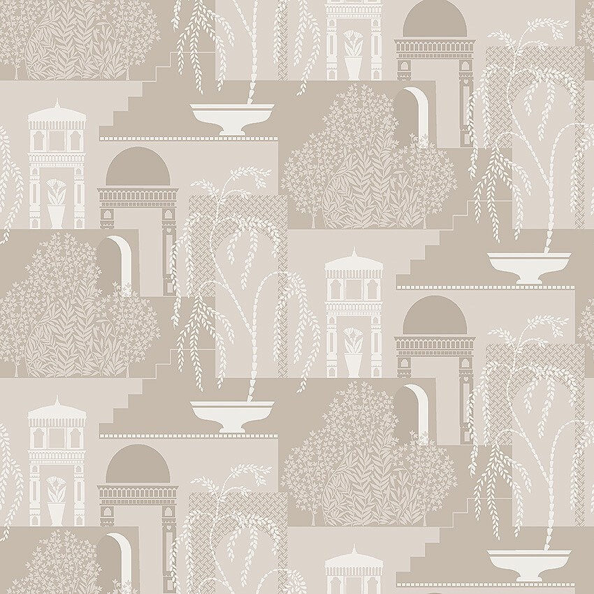 Den mönstrade tapeten Mimi är en modern tolkning av en mönstertyp som var väldigt vanlig på 1920-talet: miljöer och människor från antiken. Silhuetter av en drömsk trädgård, med sirliga växter och rikt dekorerade byggnader. De milda kontrasterna och rena linjerna ger mönstret ett modernt uttryck.Här ser du tapeten Mimi tryckt på traditionellt vis med vackert limtryck i en neutral, lite dov färgskala av cremevitt, beige och grått. Matchar bra med: Swedish Grace 5521, Pigment 7549, Pigment 7545Rekommenderat Lim: Hernia Non-WovenFör bästa resultat rekommenderar vi en grundmålad yta att tapetsera på