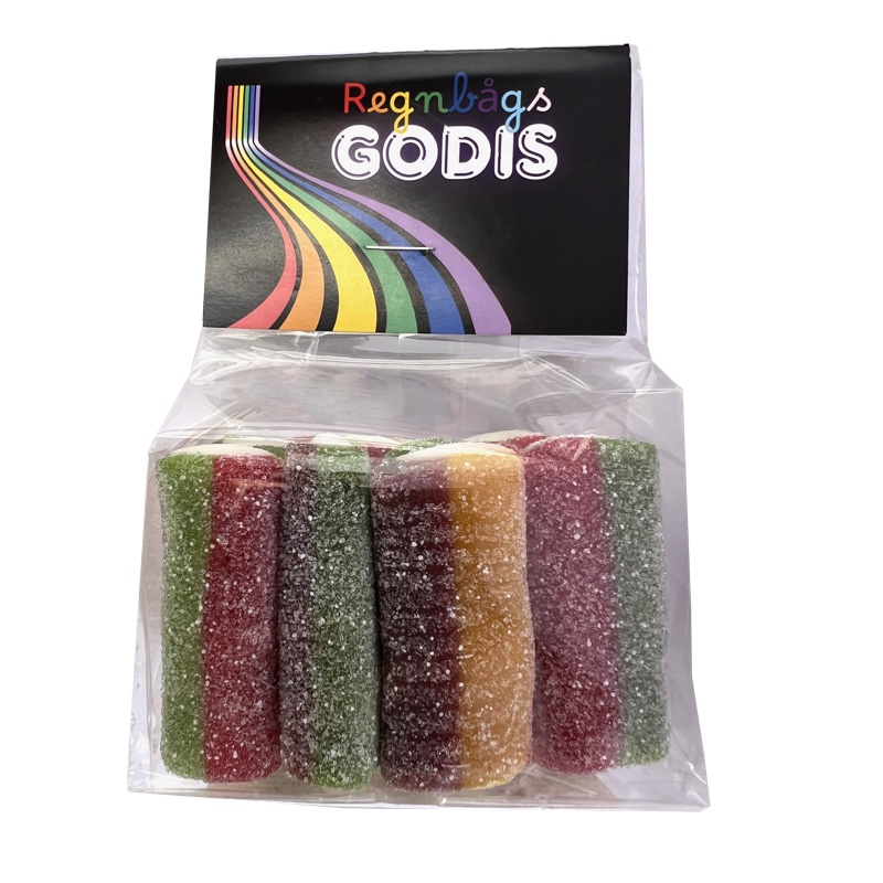 Regnbågsbalkar sura, färgglada och fulla av smak!Regnbågsbalkar! De är färgsprakande, fruktiga och har den där perfekta syrligheten som får det att vattnas i munnen. Varje balk är en rak, seg godis i regnbågens alla färger lika vacker som den är god.Regnbågsbalkarna är det perfekta valet för dig som älskar surt godis med mycket smak. De är lite lik våra populära regnbågsrullar, men kommer i raka bitar som är lätta att dela eller behålla för dig själv. Passar perfekt till fredagsmyset, som färgklick på godisbordet eller som en kul detalj i barnens kalaspåsar.Sött, surt och färgglatt vad mer kan man önska sig? Oavsett om du planerar ett kalas, en fest eller bara vill ha något extra gott till dig själv, så är regnbågsbalkar ett säkert kort!Köp fler och betala mindre 4 st 100:- Regnbågsbalkar färgglatt regnbågsgodis med syrlig smakexplosionLetar du efter riktigt färgglatt godis som både smakar fantastiskt och ser roligt ut? Då kommer du älska våra regnbågsbalkar ett surt och fruktigt regnbågsgodis som snabbt blivit en favorit bland både barn och vuxna!Regnbågsbalkar är raka kapade godisremmar i regnbågens alla färger. De har en perfekt balans mellan sött och surt och en seg, mjuk konsistens som gör varje tugga till en smakupplevelse. Färgerna gör dem inte bara till ett gott godis, utan också till ett riktigt blickfång oavsett om det är fredagsmys, barnkalas eller godisbordet på en fest.Det här regnbågsgodiset är lätt att dela och lika gott att äta som det är att titta på. De raka balkarna är perfekta att lägga i godispåsar, använda som dekoration på tårtor eller helt enkelt njuta av direkt ur påsen. Regnbågsbalkar passar utmärkt för alla tillfällen där du vill ha något som både smakar gott och sprider glädje.Med sina klara färger och fruktiga syra är våra regnbågsbalkar ett självklart val för dig som älskar färgglatt godis med mycket karaktär. De är dessutom en fin komplettering till andra regnbågsfavoriter som rullar eller sura bitar.Så nästa gång du vill ha ett godis som piggar upp både smaklökarna och humöret välj våra regnbågsbalkar. Ett färgstarkt inslag i varje godisstund!En perfekt gåva för dig själv eller, att överraska och glädja dina nära och kära.