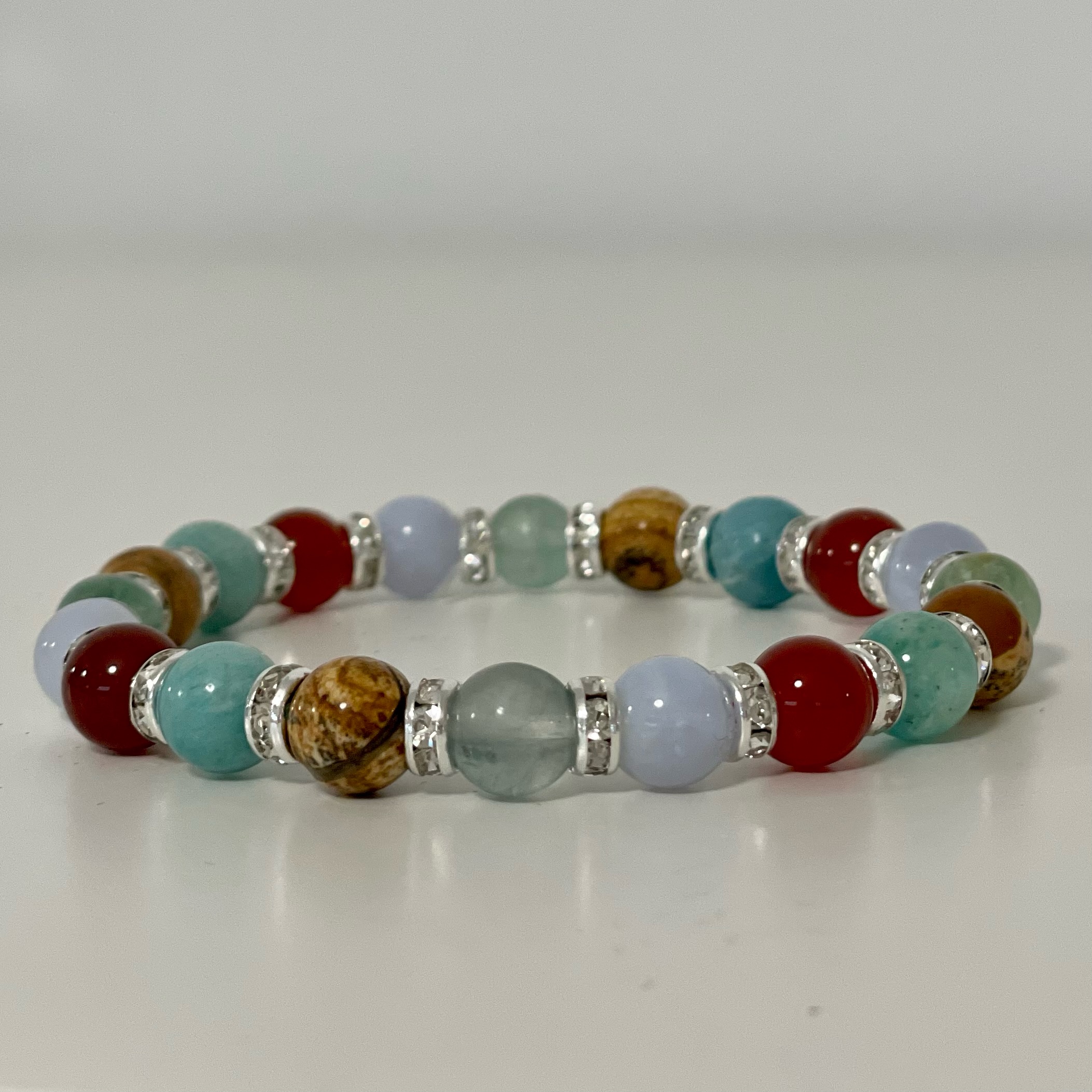 Karneol - Vitaliserande och renandeAmazonit - LugnandeFluorit - Renande, ger fokusBlå kalcedon - Harmoniserande, lugnandeJaspis - Jordande