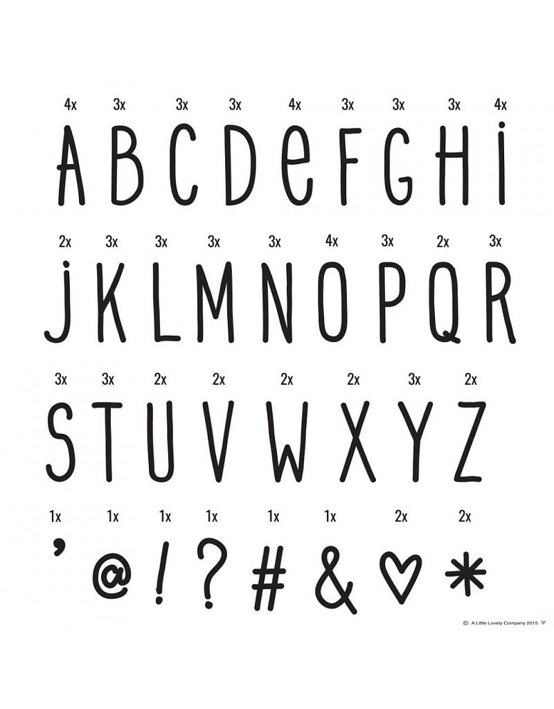 Kompletterande bokstäver och symboler i handskriven stil, passar till lightbox i storleken A4 och A5.