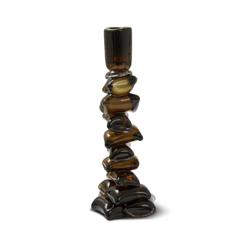 Carmella - en handblåst ljusstake som smälter in och sticker ut! Möt Carmella, ljusstaken som förvandlar ljusets plats till ett konstverk. Med sin chunky form och med sina mjuka, lekfulla siluetter ser Carmella nästan ut som om lena karameller har staplats ovanpå varandra - ett harmoniskt möte mellan skulptur och funktion. Den abstrakta designen gör Carmella till ett uttrycksfullt inslag i rummet, samtidigt som dess rundade former skapar en inbjudande känsla. Den passar lika fint på det dukade bordet som på en hylla där den får stå för sig själv och glänsa. Carmella är mer än en ljusstake - det är ett leende i inredningen. Ljusstaken finns också i en mindre storlekSkickas inom 2-4 arbetsdagar Carmella Ljusstake Brun L 2/2Storlek: Höjd 34 cm Diameter 12.5x12.5 cmMaterial: 100 % Handblåst glasFärg: Java