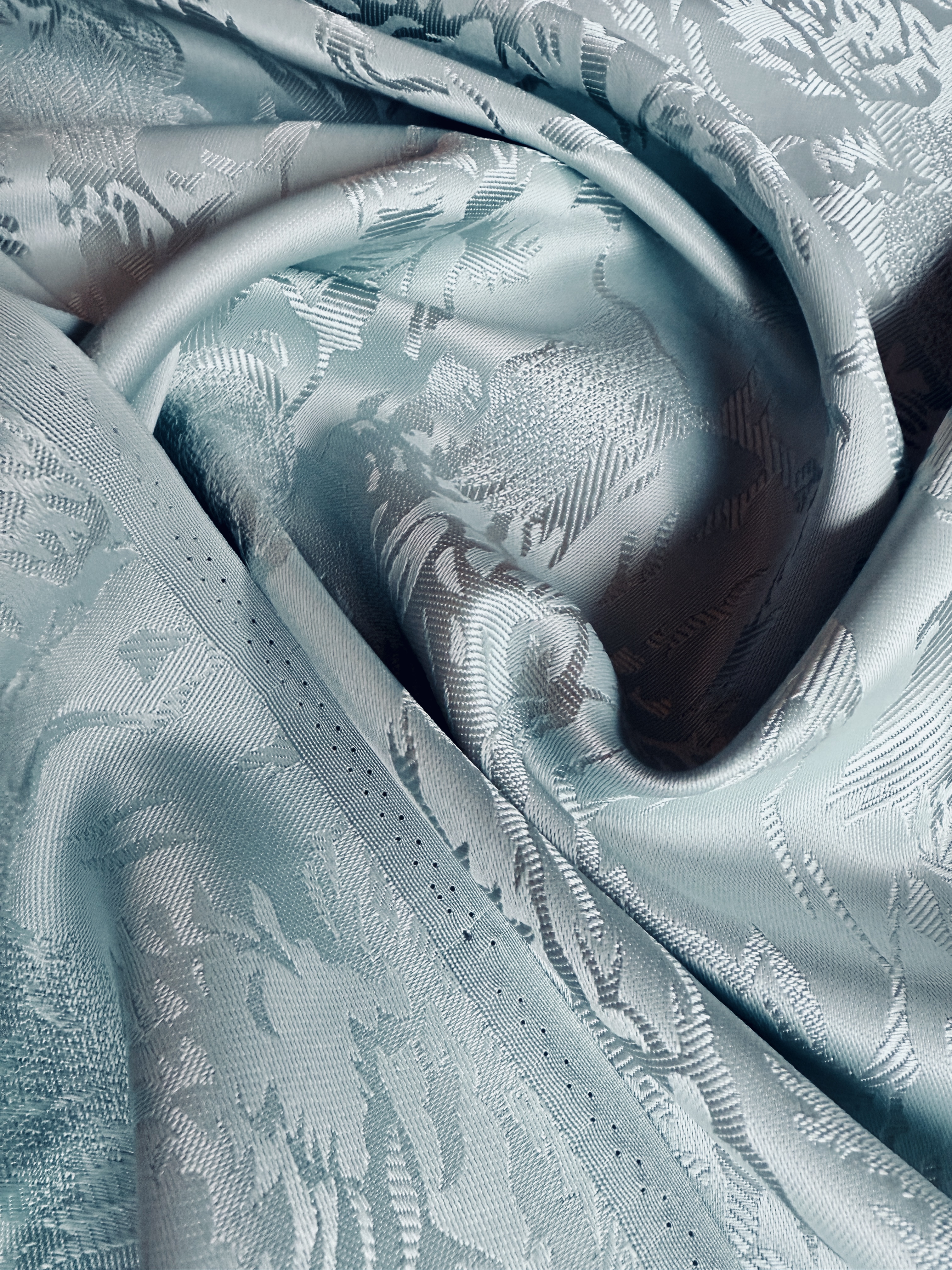 Vintagetyg - brokadmönstrat lite grövre tyg. Bredd 120 cm och längd 1,05 m. Priset är för hela biten. Vintagetyg. Jättesnyggt blankt/brokadmönstrat lite grövre tyg i turkos (ljus dämpad färg), vackert tungt fall.Priset är för hela biten. OBS - det är mycket svårt att fotografera turkosa tyger, första bilden visar färgen bäst.Kvalitet: Rayon/viscose (mest troligt)Bredd: 120 cm.Längd: 1,05 meterTidsperiod: okänt, men troligt 90-talSkick: Perfekt, helt oanvänt.