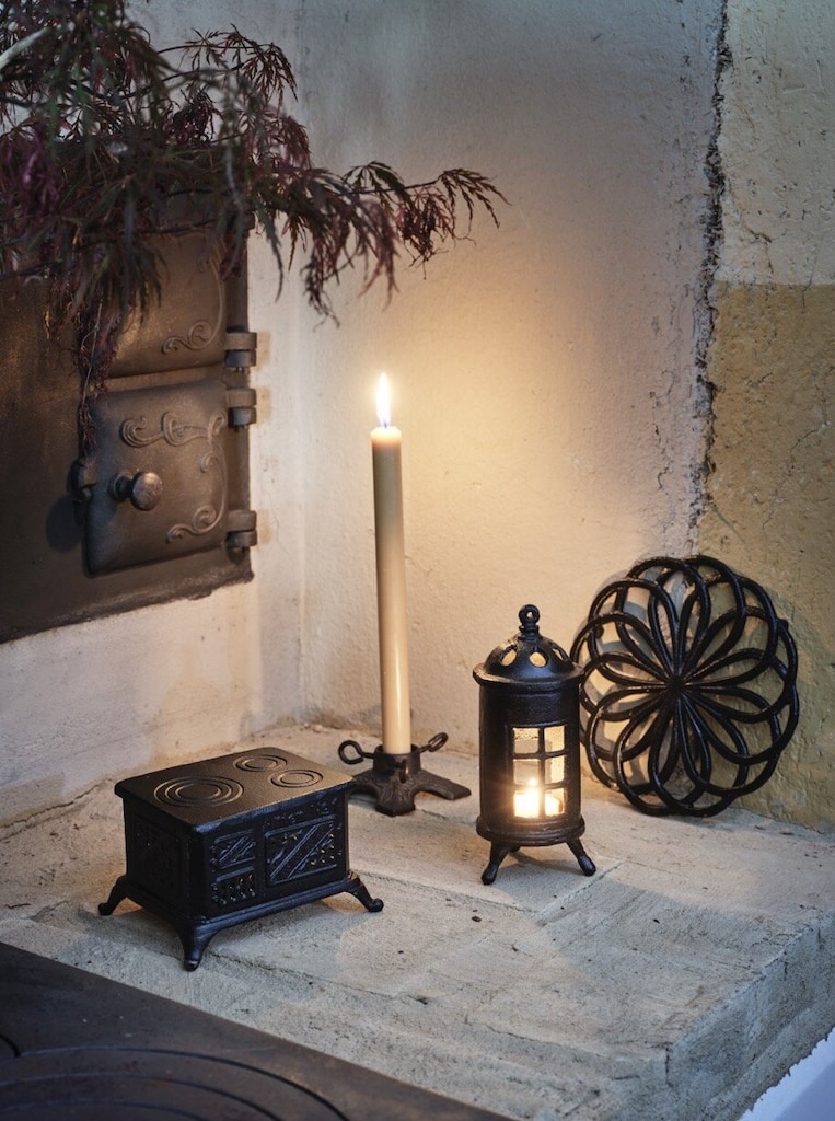 Liten Köksspis/Ljusstake för Värmeljus Svart Gjutjärn