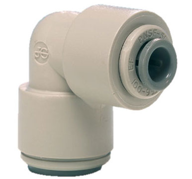 Push-in-koppling för vinklad övergång mellan hårda slangar eller rör med ytterdiameter 1/2" (12,7 mm) och 3/8" (9,5 mm).Denna typ av koppling kallas ofta för JG efter originalet - John Guest. Vi representerar John Guest i Sverige.