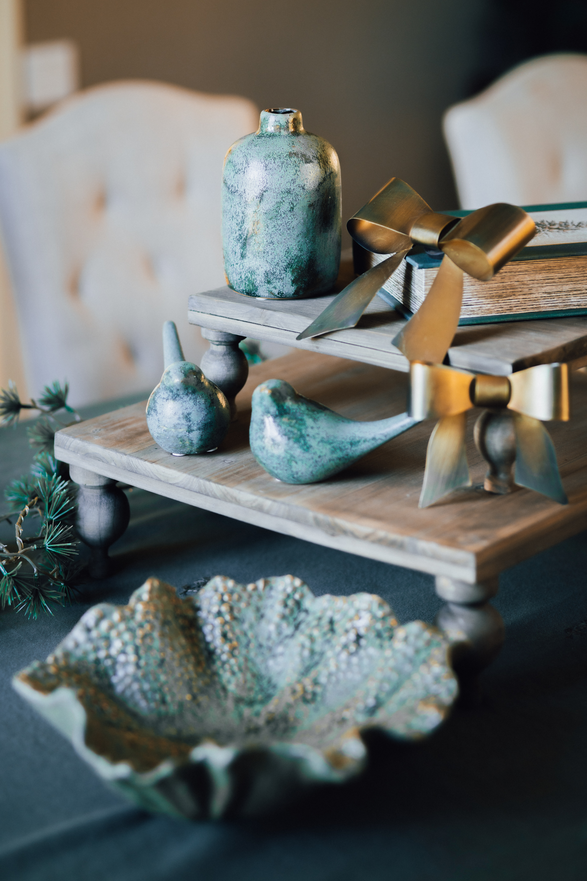 Set med två små piedestalbord som är perfekta när du vill ställa fram dekorationer, ljus, växter och annat och skapa olika nivåer i inredningen. Tillverkade i trä. Finns i flera färger.L.40x40x12cm S:30x30x10cm