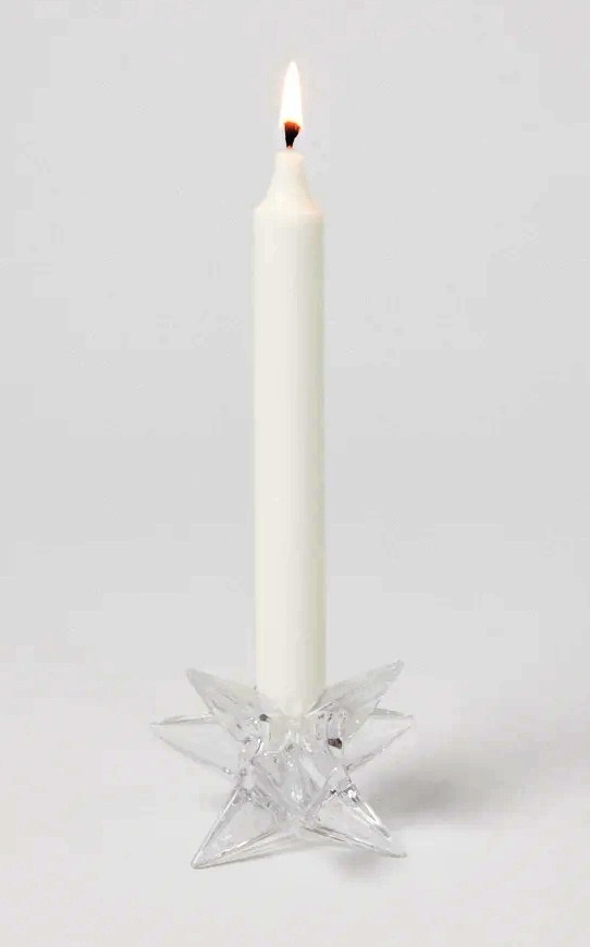 Vacker ljushållare i klarglas med vacker form av en stjärna. Skimrar vackert i mörkret. Avsedd för kronljus.H:6,8, L:9,5, D:9,5 cm