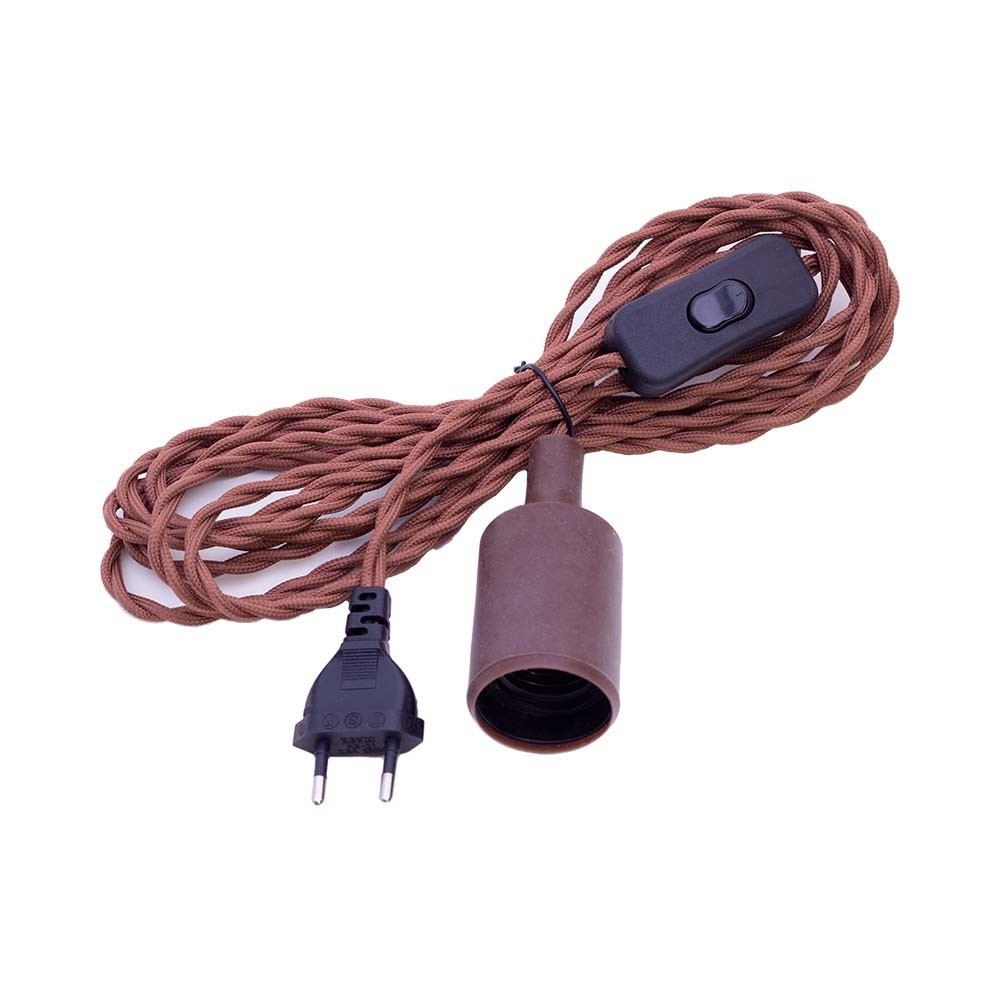 Modern retroinspirerad lamphållare med tvinnad textilkabel i gammaldags design.En strömbrytare är monterad på lamphållaren vilket gör det enkelt att tända och släcka. Komplettera med lämplig växtlampa och sätt din egna stil på belysningen.Lamphållaren har E27 sockel, 4m brun tvinnad textilkabel med strömbrytare, kabelfäste, upphängningskrok och stickpropp. Innehåller ingen lampa. Finns i svart, brun eller grå färg.