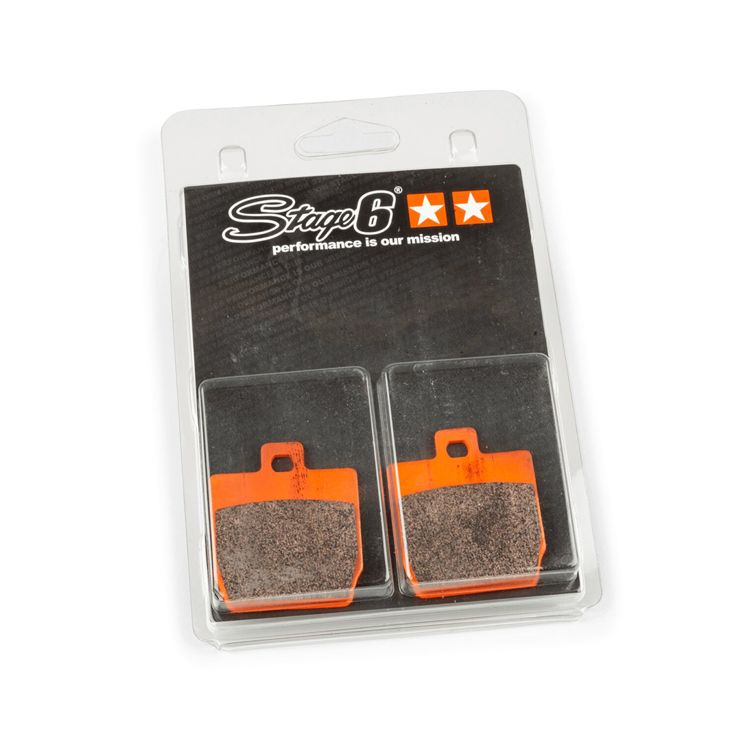 Bromsbelägg Stage6 Sport Yamaha Aerox / Neo’s resp. MBK Nitro / Ovetto och många fler. Utmärkt valuta för pengarna organiska SPORT-bromsbelägg från Stage6. Dynorna utvecklades i första hand för stadstrafik och dagligt bruk och garanterar lång livslängd och optimal stoppkraft.De kraftfulla och mångsidiga bromsbeläggen ger märkbart förbättrad bromsprestanda redan från början, bromsbeläggen behöver inte värmas upp för att leverera optimal prestanda. Bra val för att få din tvåhjuling till ett snabbt stopp även i höga hastigheter och under svåra förhållanden.För optimal bromseffektivitet rekommenderar vi att du alltid byter de främre och bakre bromsbeläggen samtidigt, regelbundet luftar bromssystemet och använder ny bromsvätska.För sportig ridning och racing rekommenderar vi Stage6 Racing pads.Bromsbeläggen liknar Stage6 SPORT Yamaha Aerox / Neos bromsbelägg, men har ett extra hål i toppen. Säljes i par Material: Ekologiskt Användning: Racing Mått: ± 39,7 x 54 x 6,3 mm