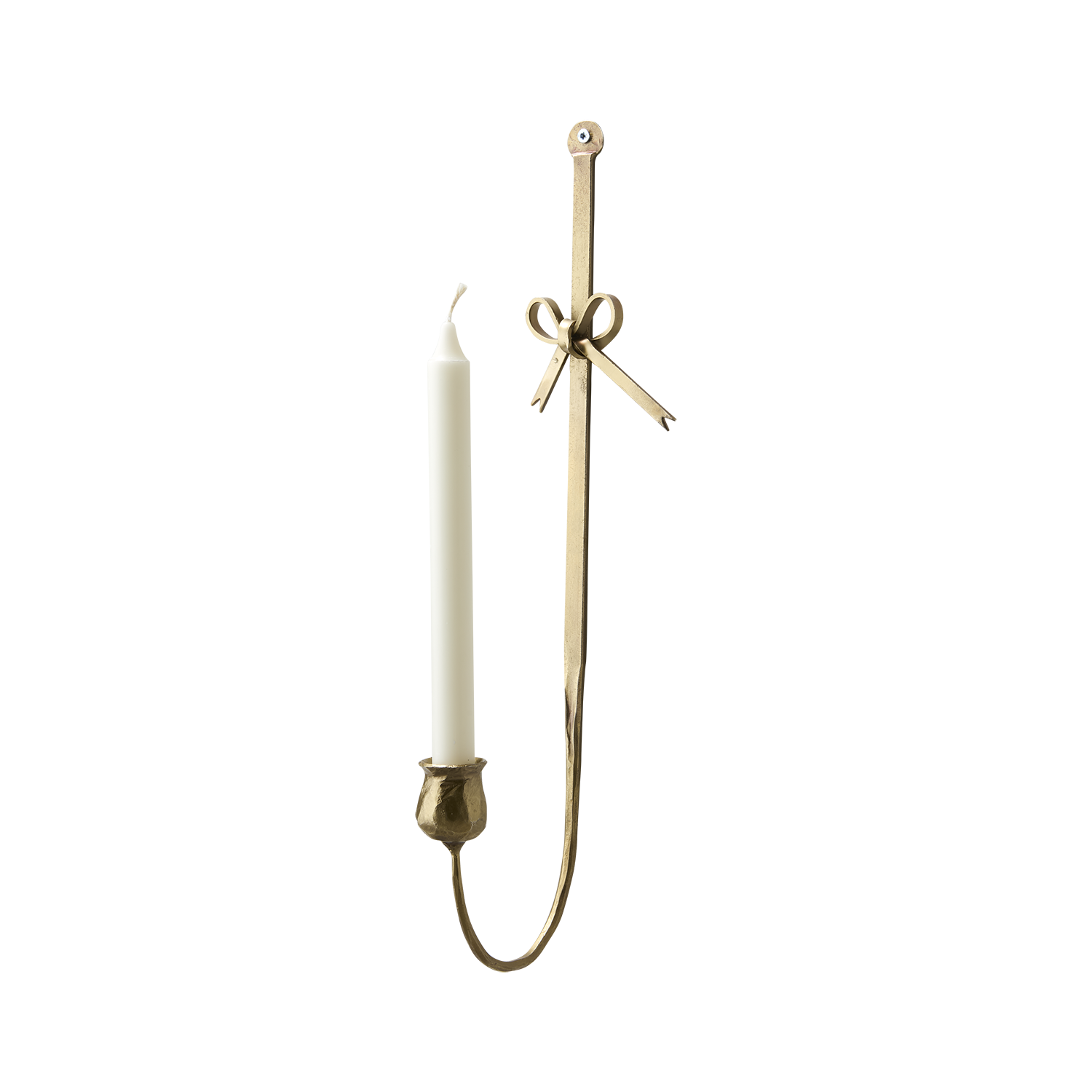 Stämningsfull väggljusstake med söt rosett i mässingsfärgad metall. Lättplacerad & passar i hemmets alla rum. Sprider ett varmt och stämningsfullt sken genom sin vackert reflekterande mässingsyta. En elegant väggljushållare i större format som skapar karaktär och harmoni i rummet. Tidlös, stilren och full av atmosfär.Höjd: 46 cm Bredd: 9 cm Djup: 13 cmFärg: MässingØ2,2 cm ljus (Kronljus)