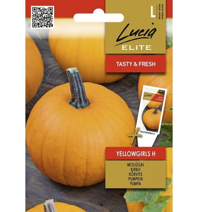 Cucurbita pepo LPUMPKIN YELLOWGIRLS HEn sjukdomsresistent, tidig, högavkastande hybridvariant som passar både för matlagning och dekoration. Frukterna är runda och väger mellan 4,0 och 6,0 kg. Mogna frukter kan förvaras länge på en sval plats utan att förlora sina näringsegenskaper. Dessa grönsaker är en utmärkt källa till karoten och vitaminer. Pumpor är låga i kalorier, vilket gör dem lämpliga för dem som vill gå ner i vikt. De växer snabbt och sås eller planteras utomhus när risken för frost har passerat. Extra gödsling rekommenderas under tillväxtperioden. Pumpor kräver mycket fukt, så vattna dem när jorden är torr.3 g innehåller cirka 16–19 frön.3 g räcker för att täcka ett område på 20 m². Skörden beror på den täthet som plantorna sätts med. Den förväntade skörden ligger mellan 60–70 kg.