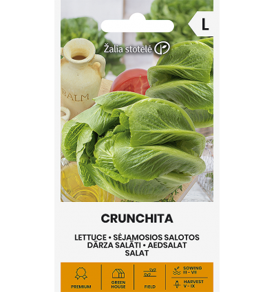 Lactuca sativa L.Krispig saftig och god!Denna sort är en korsning mellan isberg- och romainsallad. Romansallad gav sorten dess utseende, och isberg – färg, saftighet och krispighet i bladen. Sorten är motståndskraftig mot mjöldagg och intern nekros. Odlas utomhus, under täckning eller i hydroponik. Jorden för sallad bör vara lös, bördig, fuktig och icke-sur (pH 6,0–6,8). När jorden är för sur, växer salladen dåligt, huvuden blir mindre och bladen blir gula.(Nekros = när växtens inre vävnad dör, ofta i rot, stam eller frukt, vilket kan göra att den ser frisk ut på ytan men är brun/svart inuti.)