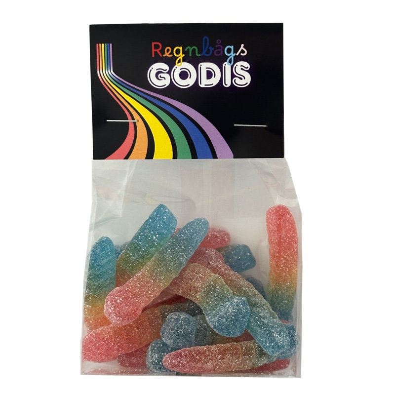 Regnbågslarver en färgsprakande smakresa! Våra Sura Regnbågslarver är lika roliga att titta på som de är goda att äta! Med sin syrliga yta och fruktiga kärna är de ett måste för alla godisälskare. Varje larv bjuder på regnbågens alla färger och symboliserar glädje, mångfald och kärlek ett riktigt statement i godisform.De är så goda att njuta av. Perfekta för Pride-festen, godisbordet, eller som färgglad vardagslyx.Varje påse är fylld med smak, syrlighet och en tydlig påminnelse: att vara sig själv är något att fira gärna med surt godis!En perfekt gåva för dig själv eller att överraska och glädja dina nära och kära.Köp fler och betala mindre 4 st 100:- Våra Sura Regnbågslarver är ett syrligt godis med regnbågens alla färger och budskap!Välkommen till en smakexplosion i regnbågens färger! Våra Sura Regnbågslarver är inte bara en fröjd för ögat de bjuder även på ett perfekt balanserat syrligt bett som övergår i härligt fruktig sötma. Varje tugga är ett lekfullt äventyr, fyllt av färg, smak och stolthet.Det här godiset passar lika bra till Pride-firandet som till fredagsmyset. Det är godis som vågar ta plats precis som alla människor borde få göra.Med Sura Regnbågslarver firar vi alla mångfald, kärlek och rätten att vara sig själv. De är mer än bara godis de är en hyllning till alla färger, känslor och identiteter. Oavsett om du firar Pride, stöttar någon du älskar, eller bara älskar surt godis med attityd så är det här påsen för dig.Smaka på stolthet. Bjud på kärlek. Och låt regnbågen få ta plats.