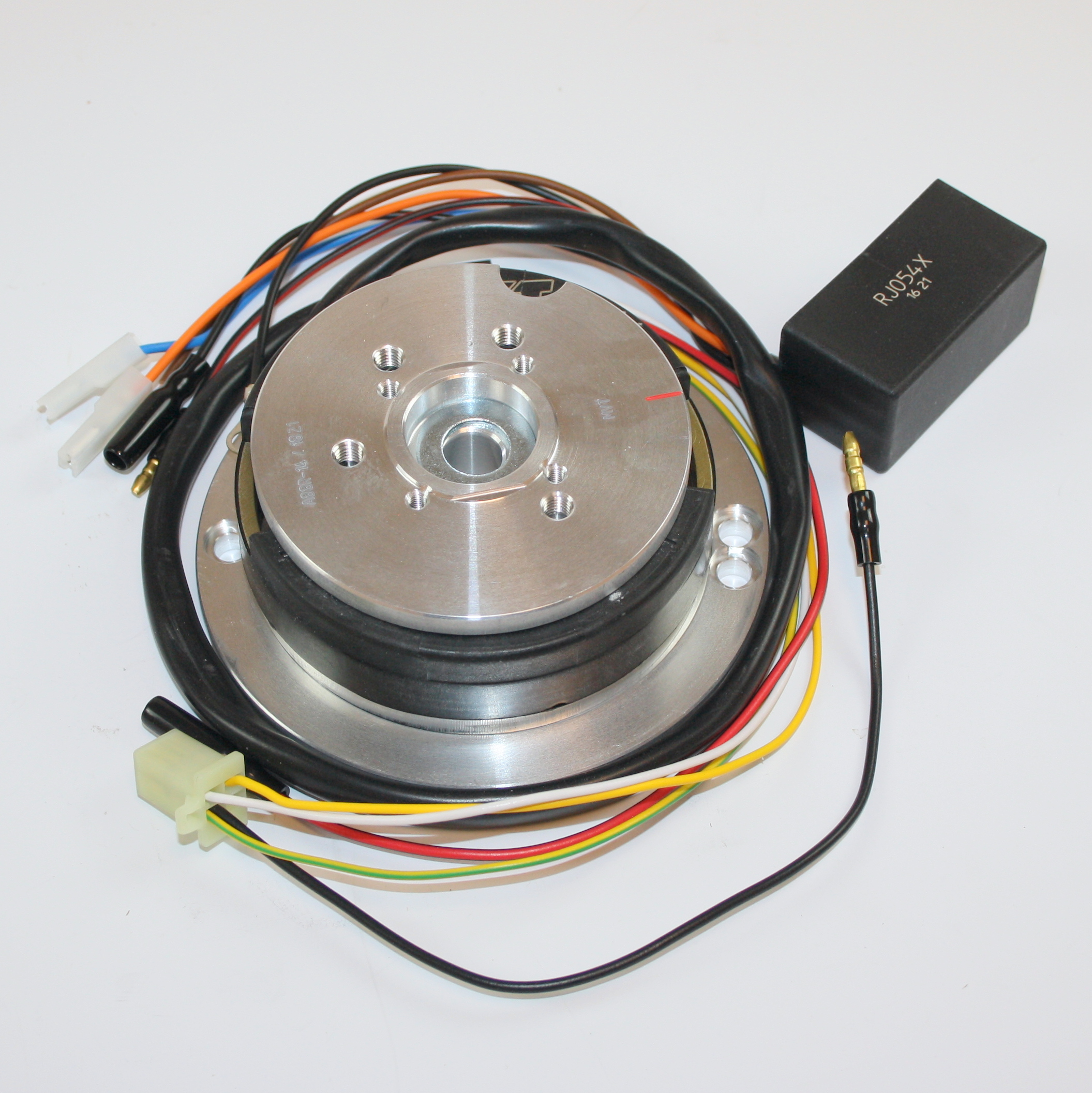 Mvt premium är ett brytarlöst innerrotorsystem med ljusspole på 55w.Tändningen är retarderande.Levereras med cdi-box.Voltregulator behöver köpas till. Inkopplings instruktion medföljer.Tillse att tändsystemet får tillräcklig kylning. Svänghjulskåpan kan behöva modifieras för detta!Har även inbyggd varvtalsbegränsning som man kan välja att koppla in om man nu skulle råka vilja ha det.