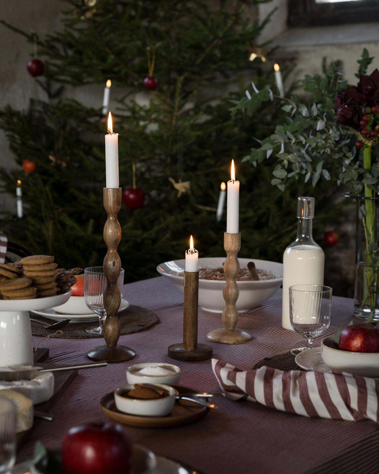 Vacker stilren ljusstake av trä med vacker form från Ernst. Ger en fin rustik känsla till inredningen. Vackert att ställa flera tillsammans i olika storlekar men lika fint med ett par tillsammans. Finns i två höjder och två trätoner. Lika fin att placera på bordet, på skänken eller på fönsterbrädan. Tillverkad av mangoträ.Höjd: 21 cmDiameter: 9 cm