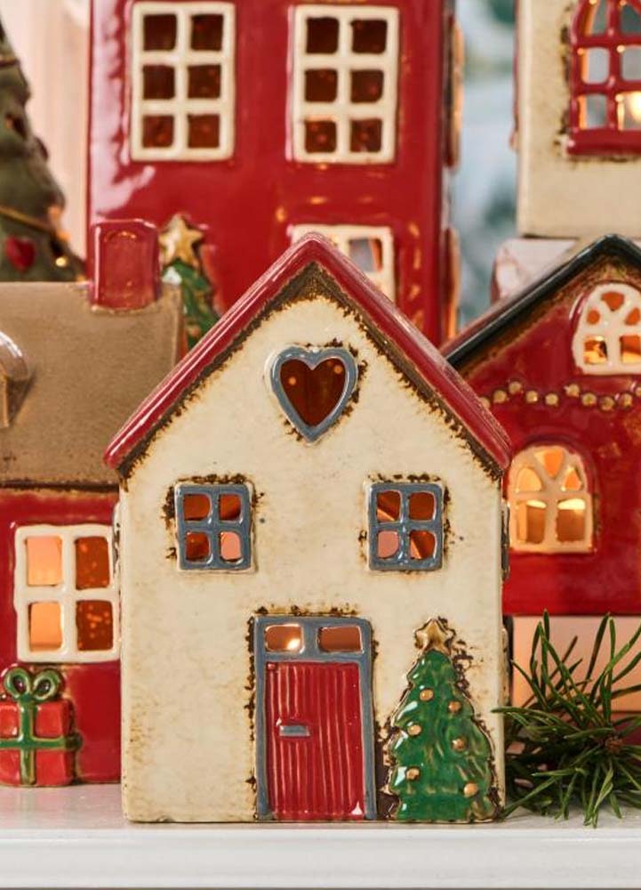 Vackert hus/julhus i glaserad keramik med utskurna fönster som sprider ett varmt & mysigt ljus. Väldigt dekorativt med fina juliga detaljer som påminner om nordisk vinteridyll & barndomsjul. Perfekt som julklapp eller gå bort present! Avsedd för värmeljus eller ljusslinga. Höjd: 14 cmLängd: 9,7 cmBredd: 7,3 cmMaterial: Glaserad keramik