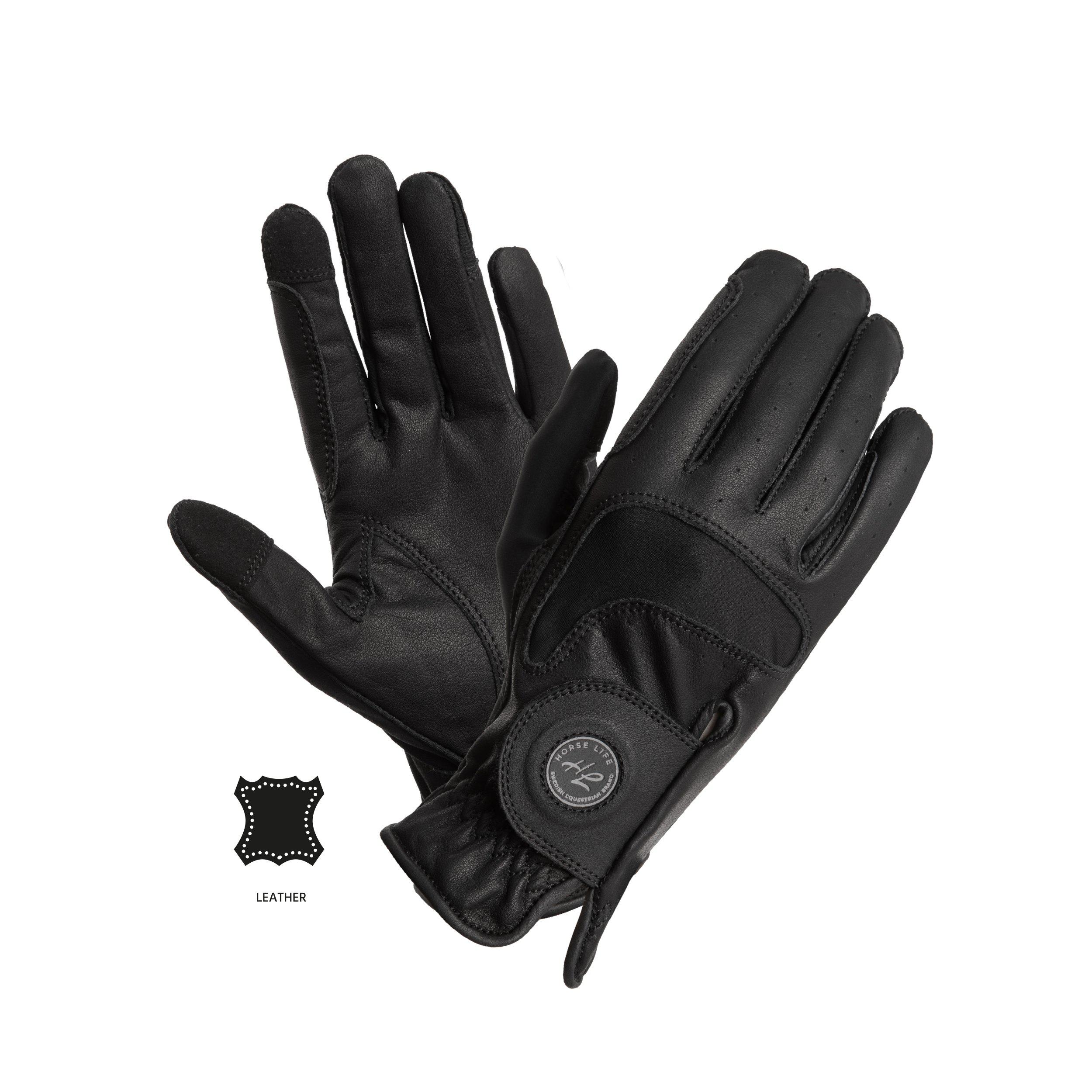 En ridhandske som kombinerar fantastiskt grepp, ventilation och följsam passform. Tillverkad i äkta, extra mjukt skinn i handflatan för maximal känsla och säkerhet i tygeln. Ovansidan har stretchiga lycrapartier som ger både ventilation och rörelsefrihet – perfekt för långa ridpass.Handsken är ergonomiskt utformad och har en justerbar knäppning för individuell passform. Slitstarka material och snygg design gör den lika uppskattad vid tävling som i vardagsträning. Diskret Horse Life-logo fulländar looken.Egenskaper:Fantastiskt grepp och följsam känslaExtra mjukt äkta skinn i handflatanStretchiga lycradetaljer för ventilation och rörelsefrihetJusterbar knäppning för perfekt passformSlitstark, bekväm och stilren designPassar både träning och tävlingDiskret Horse Life-logoMaterial: Handflata: 100% läder. Ovansida: 85% polyester, 15% spandex.